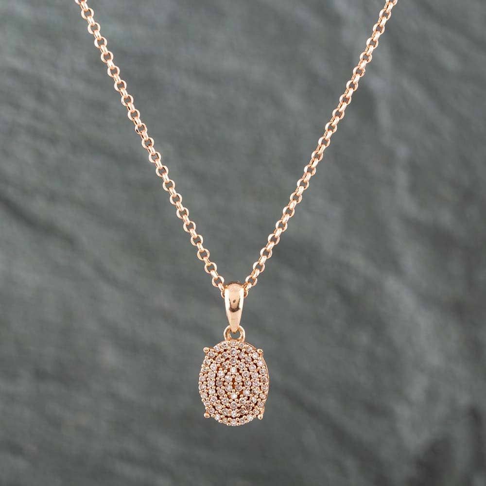 9ct Rose Gold Brilliant Cut Diamond Oval Pave Pendant & 18 Inch Trace Chain