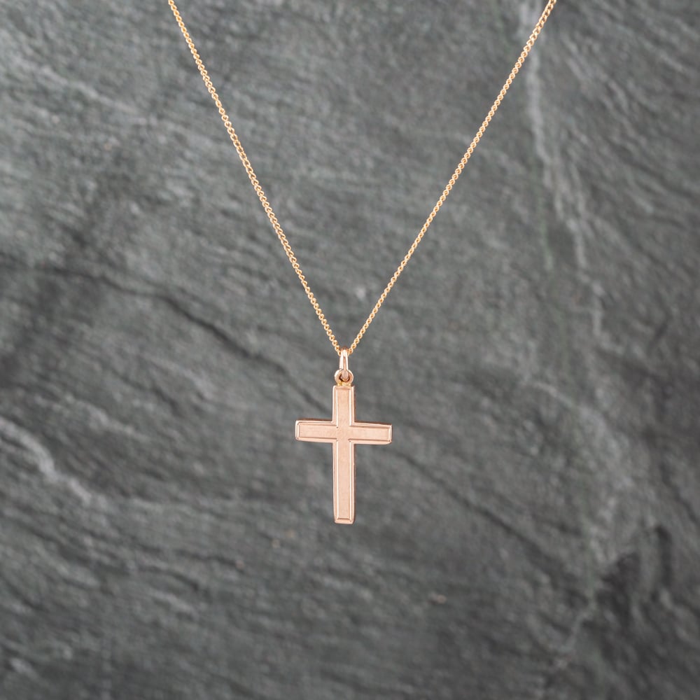 Second Hand 9ct Rose Gold Cross Pendant & 18 Inch Curb Chain 41143061 Second Hand 9ct Rose Gold Cross Pendant & 18 Inch Curb Chain 41143061