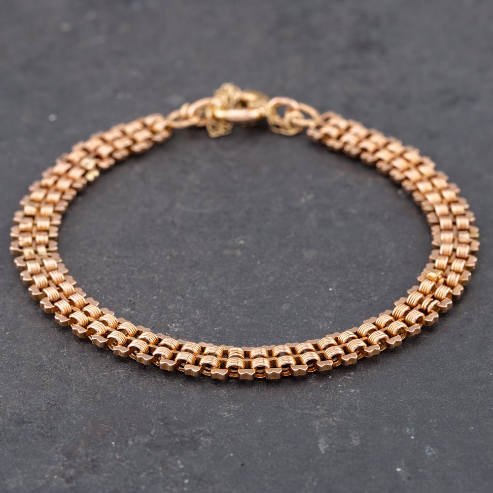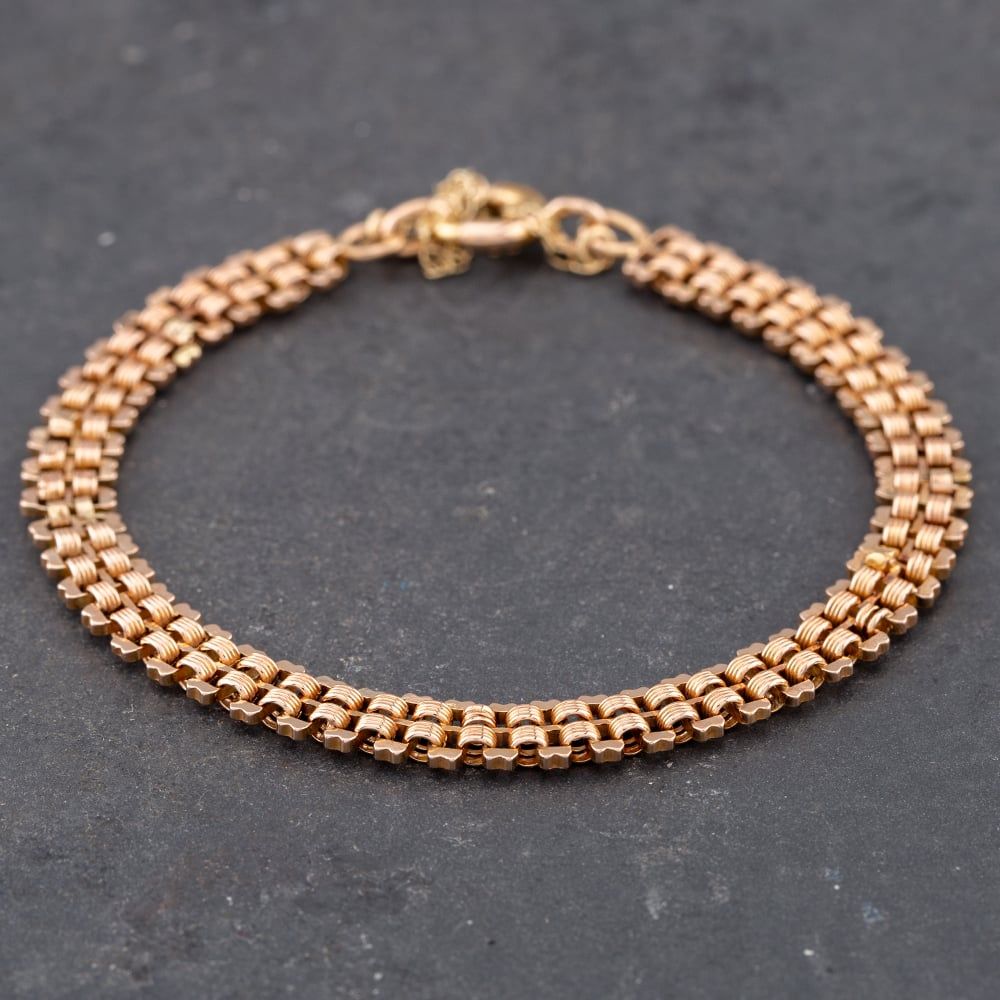 Second Hand 9ct Rose Gold Flexible 7 Inch Bar Chain Bracelet 41281273