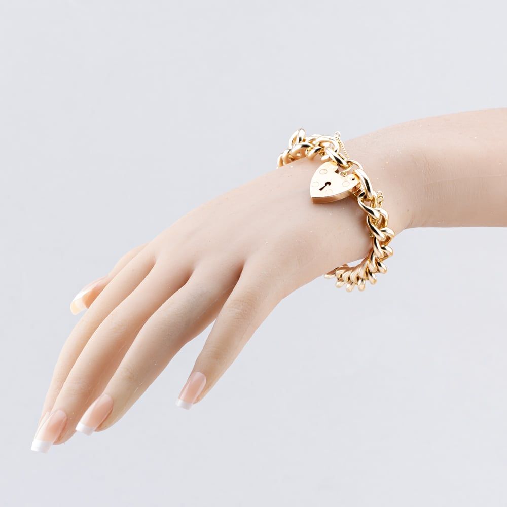 9ct Rose Gold Heart Padlock Chunky 8 Inch Curb Chain Bracelet