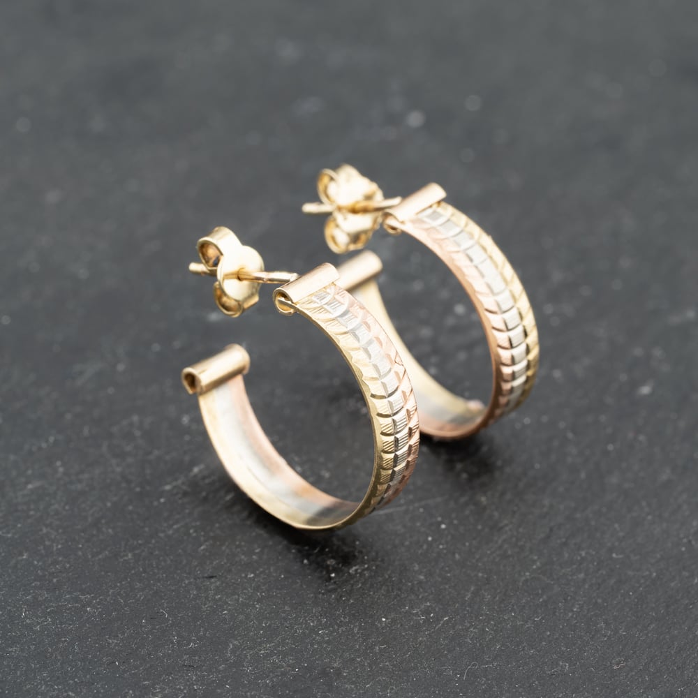 9ct three Colour Gold 20mm Diamond Cut Hoop Earrings