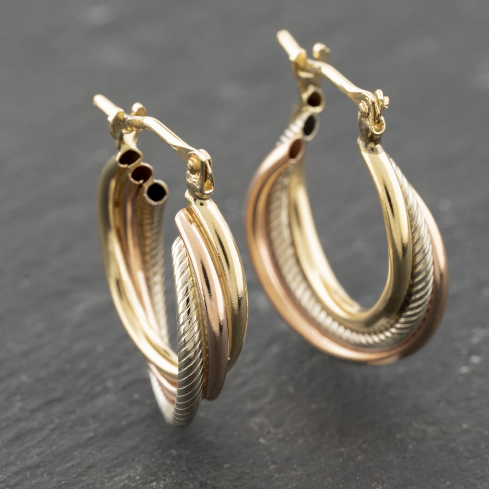 Second Hand 9ct Three Colour Gold 22mm Creole Earrings 41173989