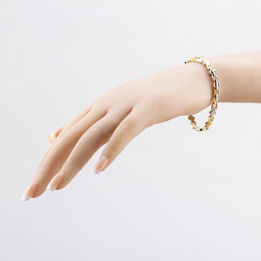 9ct three Colour Gold Brick Style 7.25 Inch Chain Bracelet