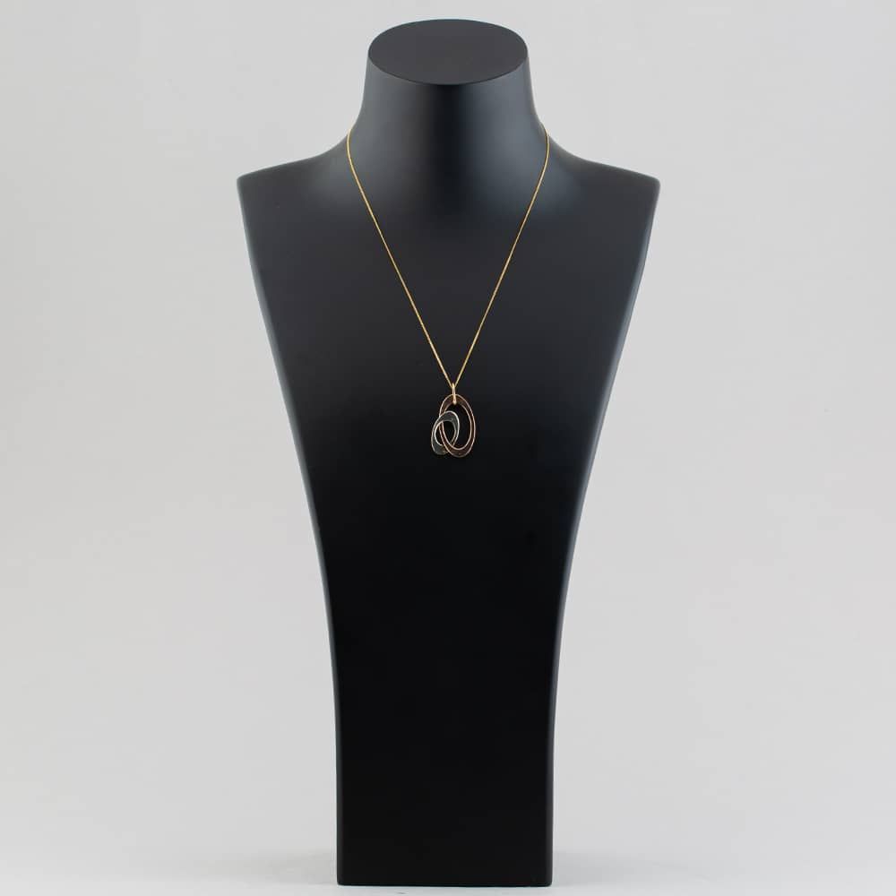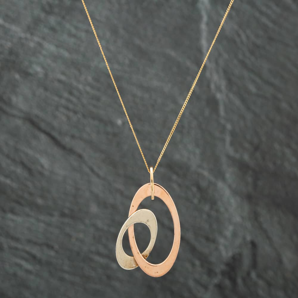 Second Hand 9ct Three Colour Gold Double Oval Pendant & 18 Inch Curb Chain 41141419 Second Hand 9ct Three Colour Gold Double Oval Pendant & 18 Inch Curb Chain 41141419