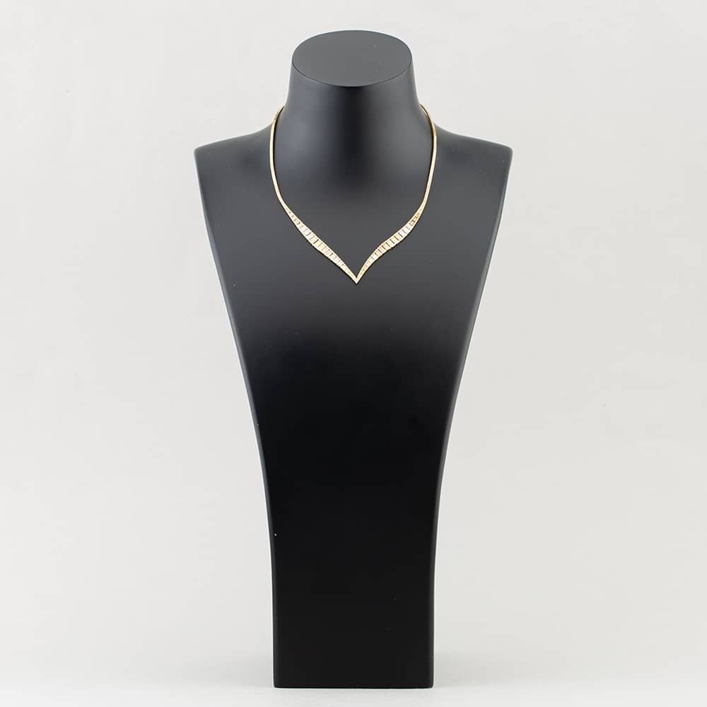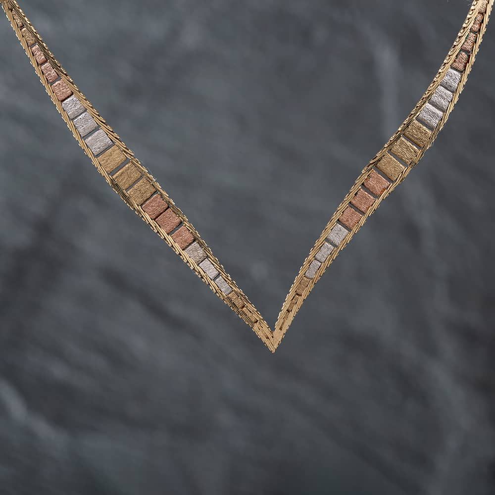 9ct three Colour Gold Graduated V Shape 16 Inch Necklet Bar Chain