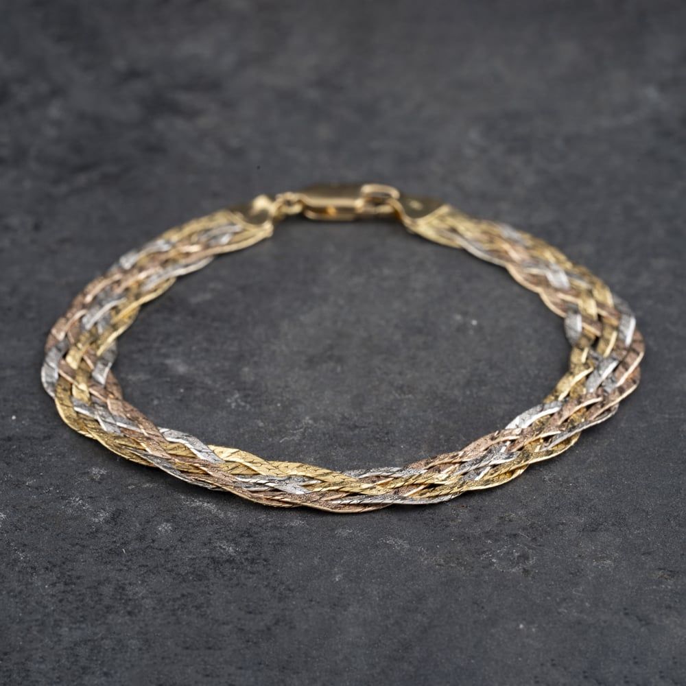 9ct three Colour Gold Plaited 7 Inch Bracelet & 14 Inch Jewellery Set