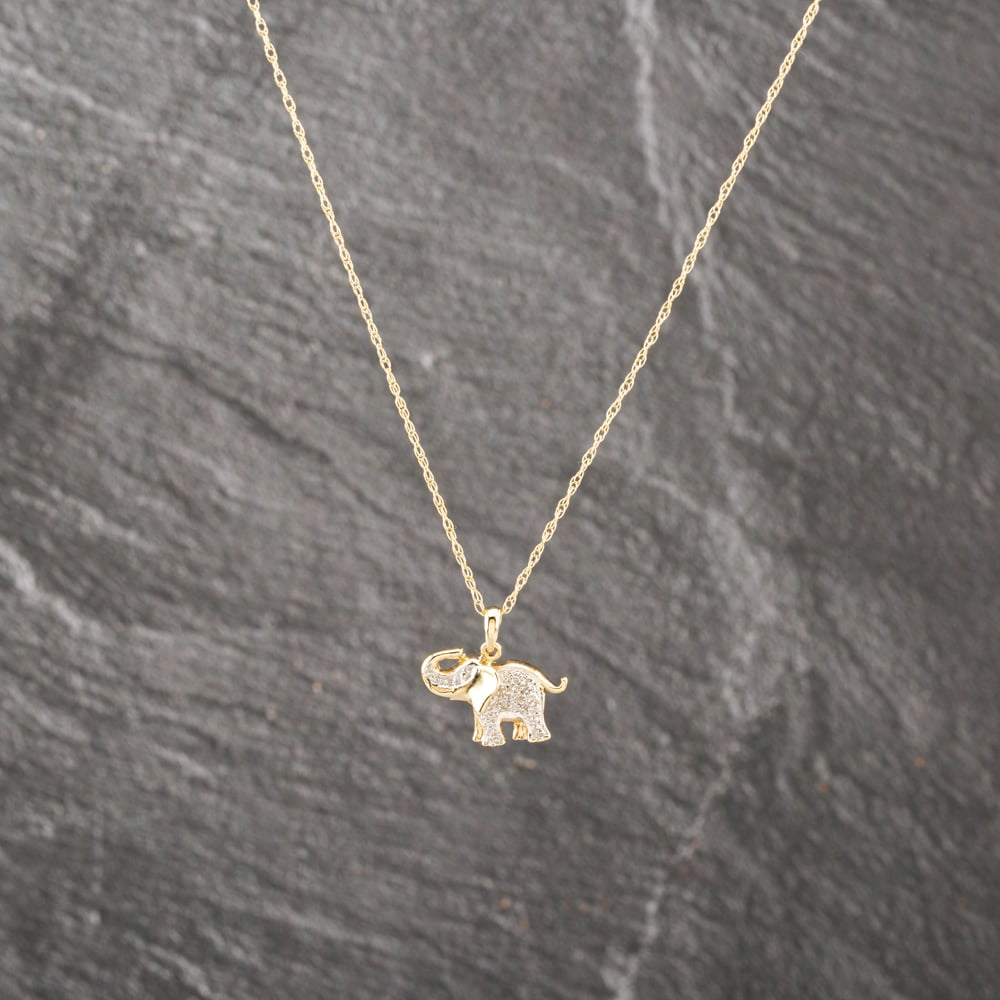 Second Hand 9ct Two Colour Gold 0.03ct Diamond Set Elephant Pendant & 18 Inch Prince Of Wales Chain 41143004 Second Hand 9ct Two Colour Gold 0.03ct Diamond Set Elephant Pendant & 18 Inch Prince Of Wales Chain 41143004