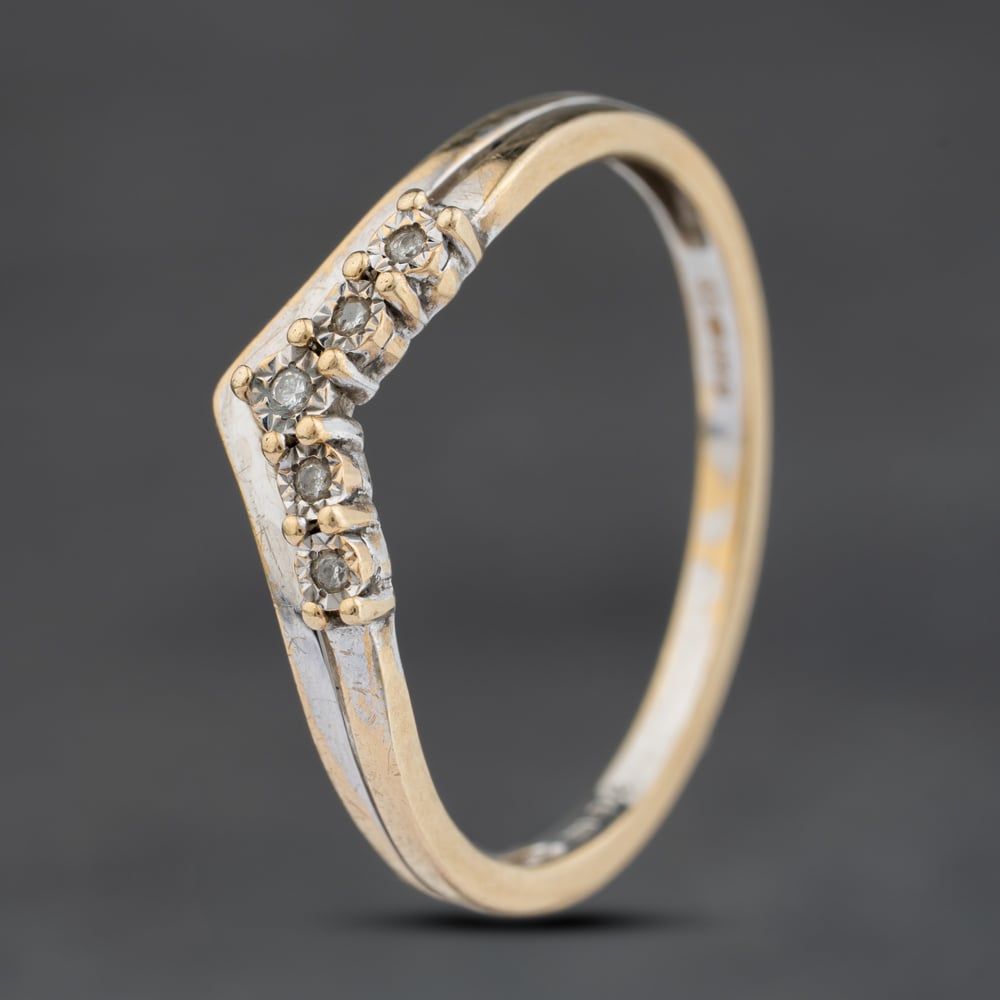 9ct Two Colour Gold 0.05ct Brilliant Cut Diamond Wishbone Ring