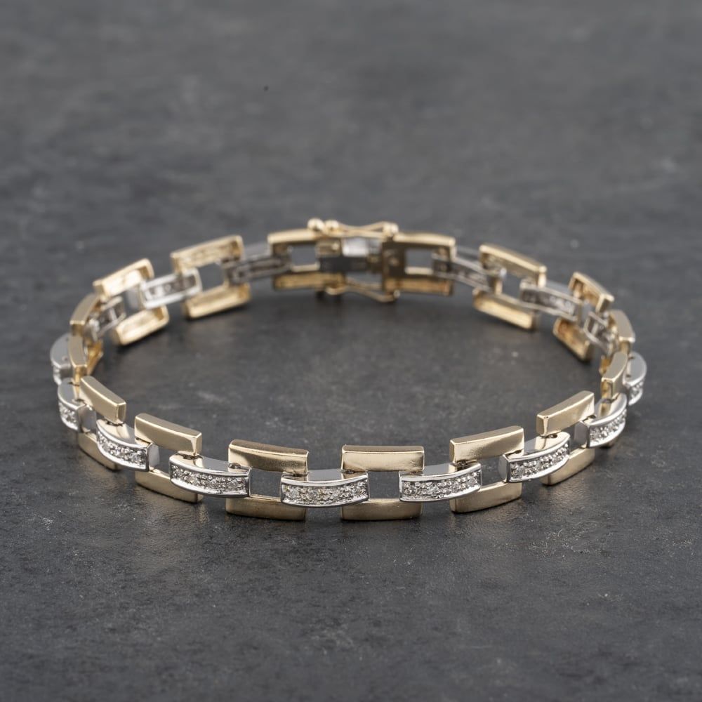 9ct Two Colour Gold 0.33ct Diamond Set 7 Inch Bar Bracelet