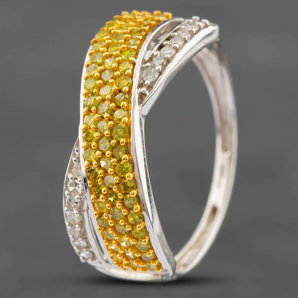 9ct Two Colour Gold 0.75ct Brilliant Cut White & Yellow Diamond Pave Twist Ring