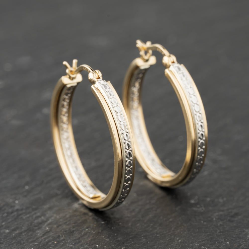 Second Hand 9ct Two Colour Gold 25mm Hoop Earrings 41173840