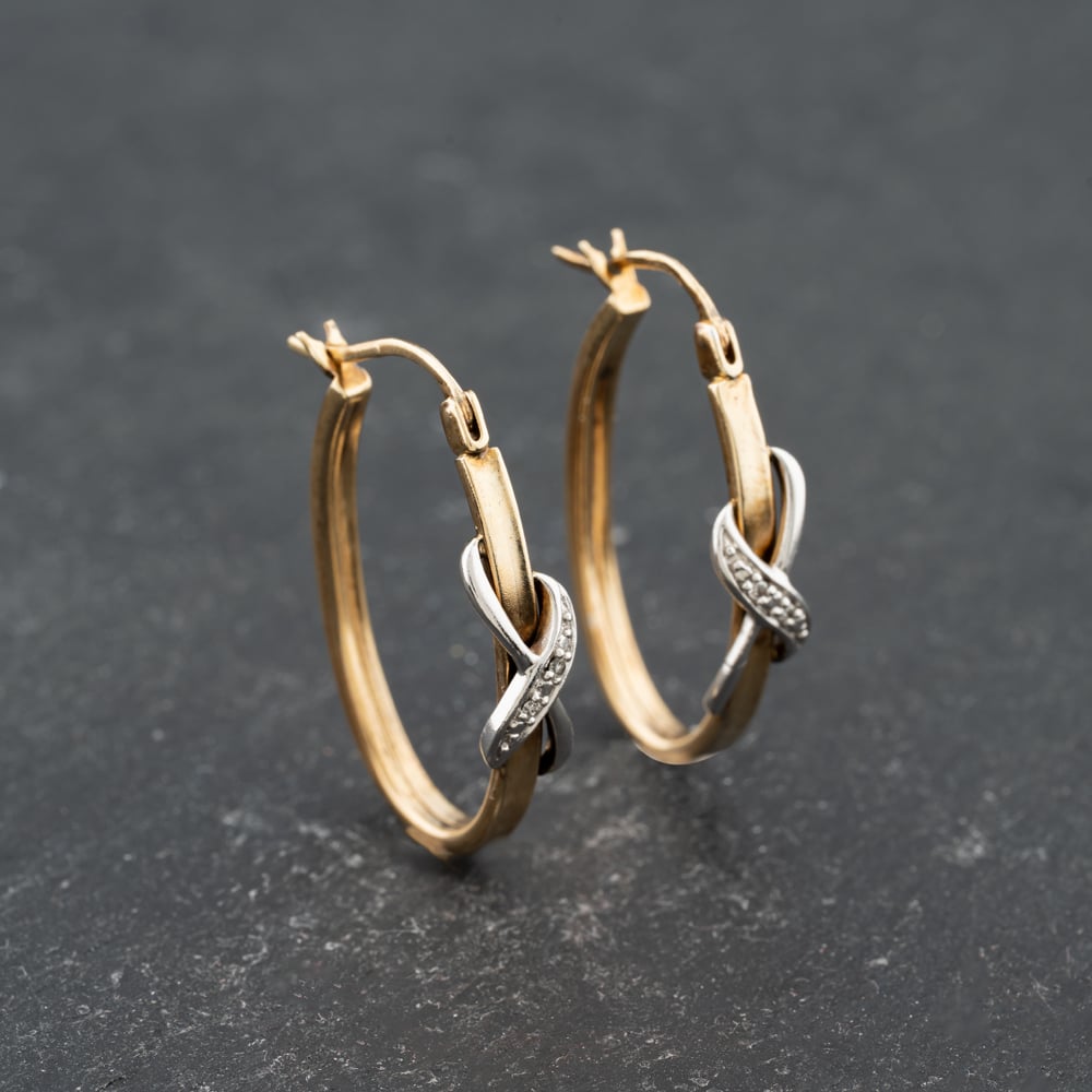 Second Hand 9ct Two Colour Gold 28.3mm Diamond Eternity Decoration Creole Earrings 41173701