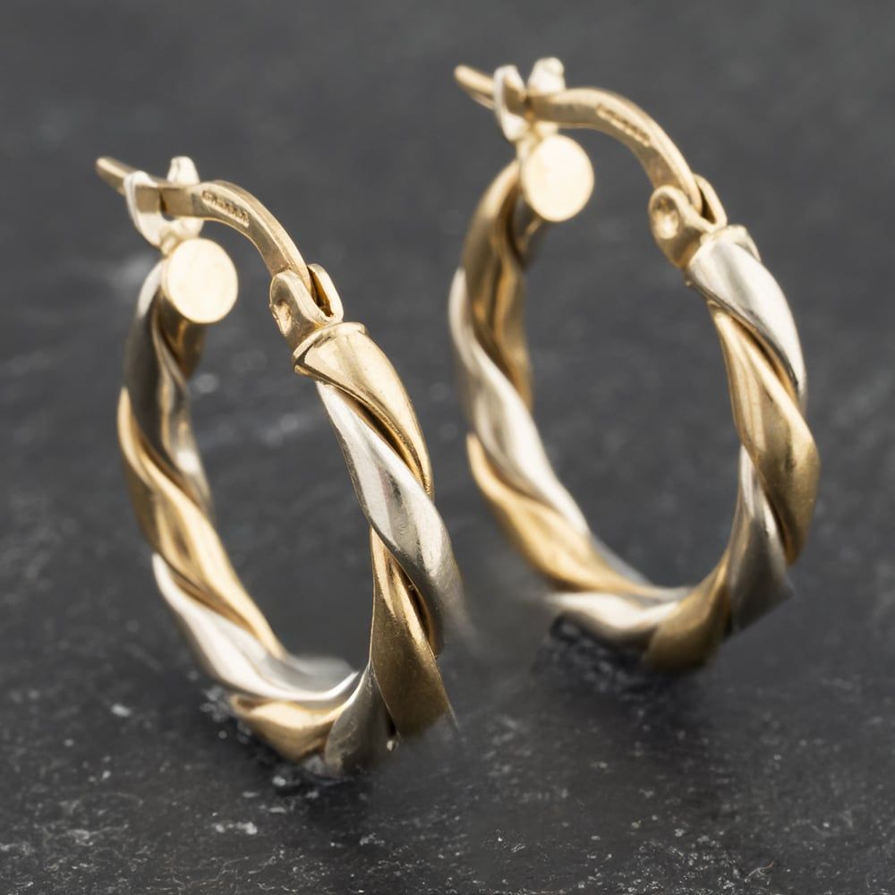 9ct Two Colour Gold 3.5mm Twist Hoop Earrings