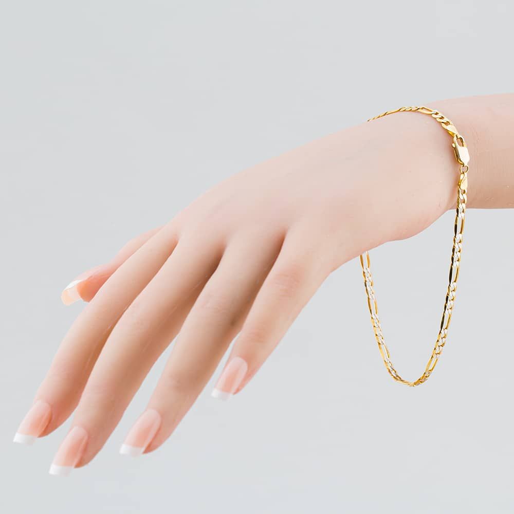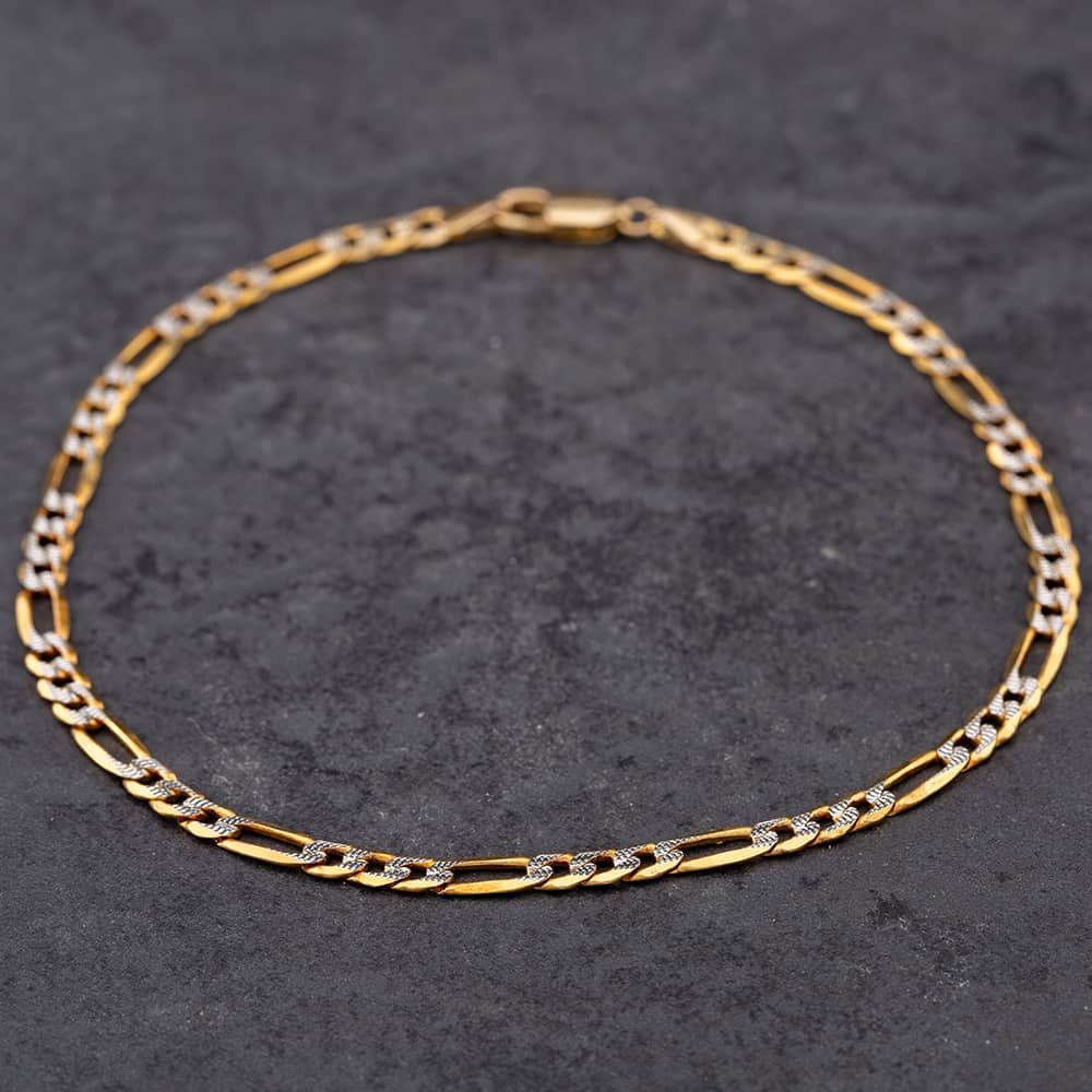 9ct Two Colour Gold Ankle 9.5 Inch Figaro Chain Bracelet