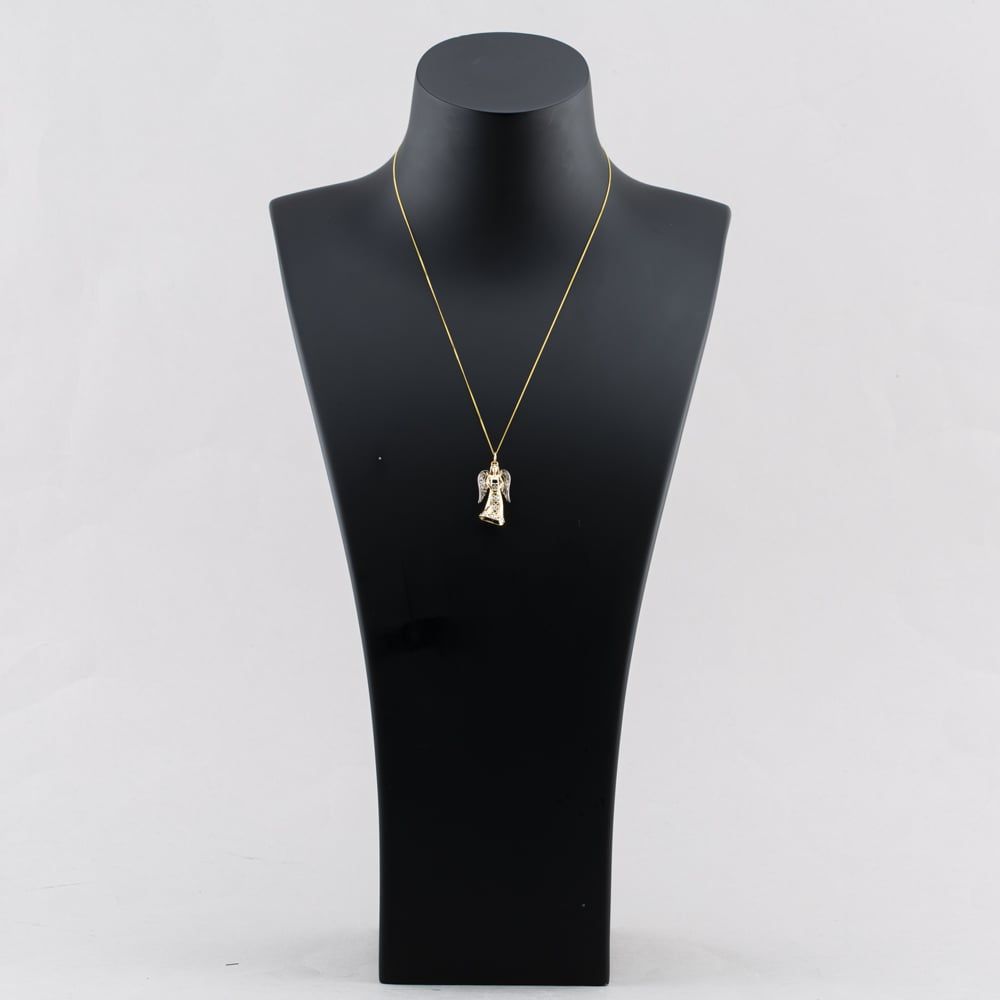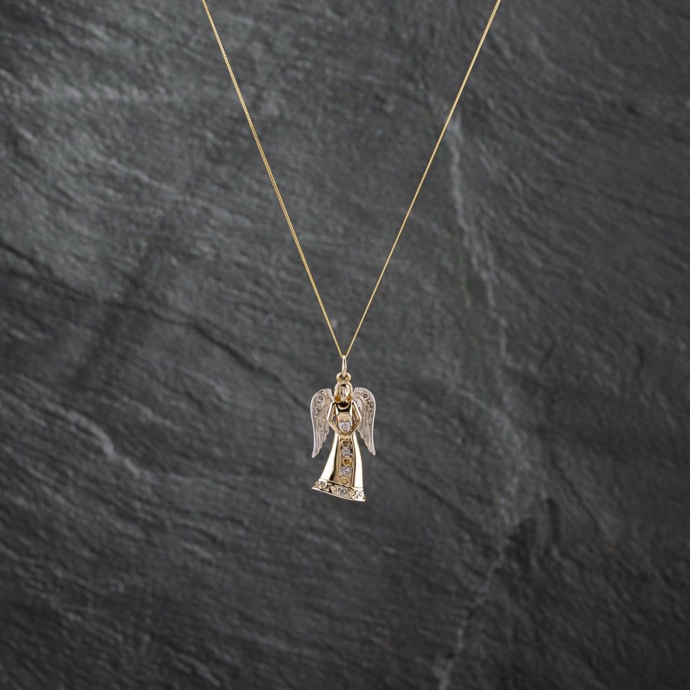 Second Hand 9ct Two Colour Gold Diamond Angel Pendant & 18 Inch Curb Chain 41142815 Second Hand 9ct Two Colour Gold Diamond Angel Pendant & 18 Inch Curb Chain 41142815