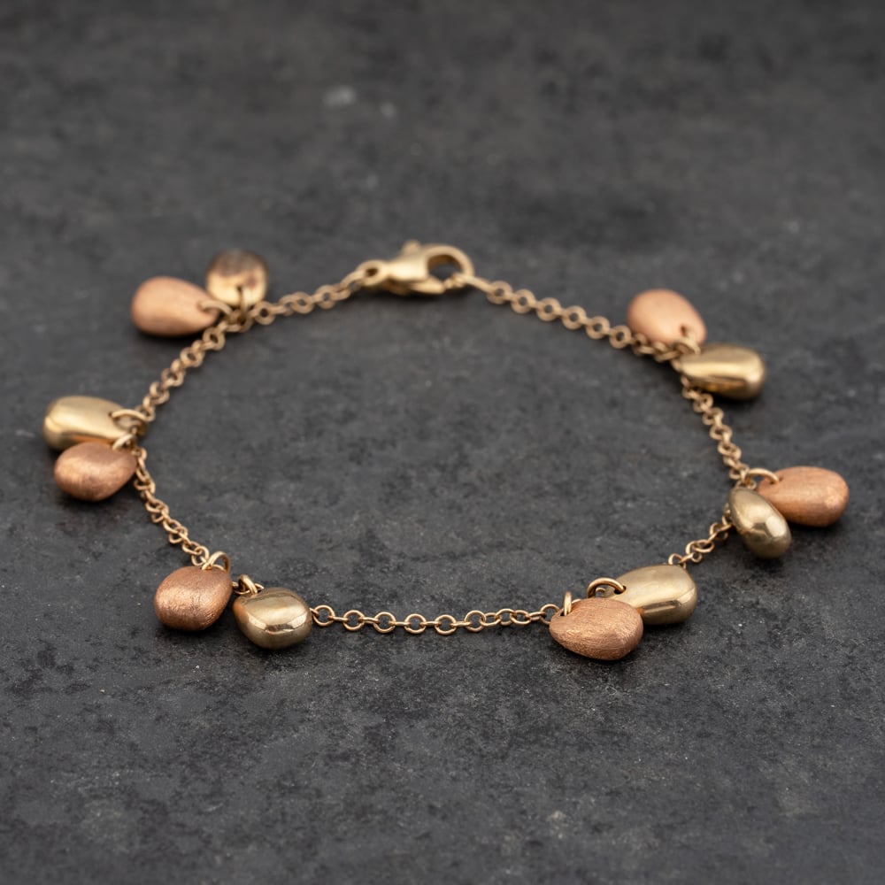 9ct Two Colour Gold Dropper 7.5 Inch Trace Bead Bracelet