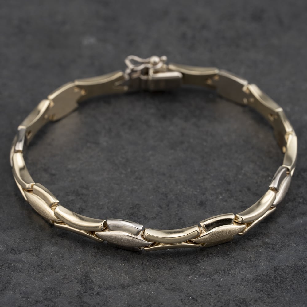 9ct Two Colour Gold Fancy Flat 7.5 Inch Link Chain Bracelet