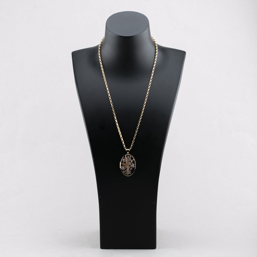 9ct Two Colour Gold Oval Foliate Engraved Locket Pendant & 22 Inch Belcher Chain