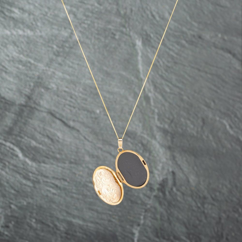 Second Hand 9ct Two Colour Gold Oval Patterned Locket Pendant & 18 Inch Curb Chain 41142754 Second Hand 9ct Two Colour Gold Oval Patterned Locket Pendant & 18 Inch Curb Chain 41142754 Second Hand 9ct Two Colour Gold Oval Patterned Locket Pendant & 18 Inch Curb Chain 41142754