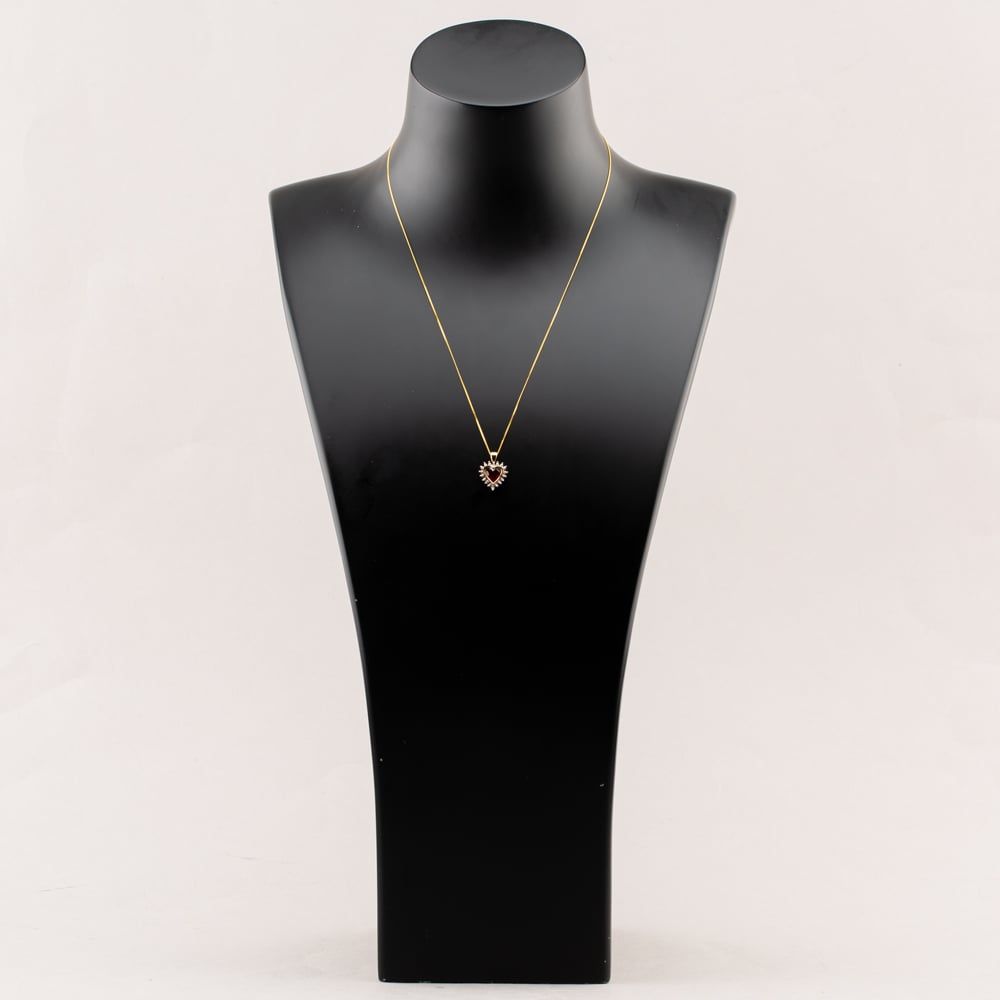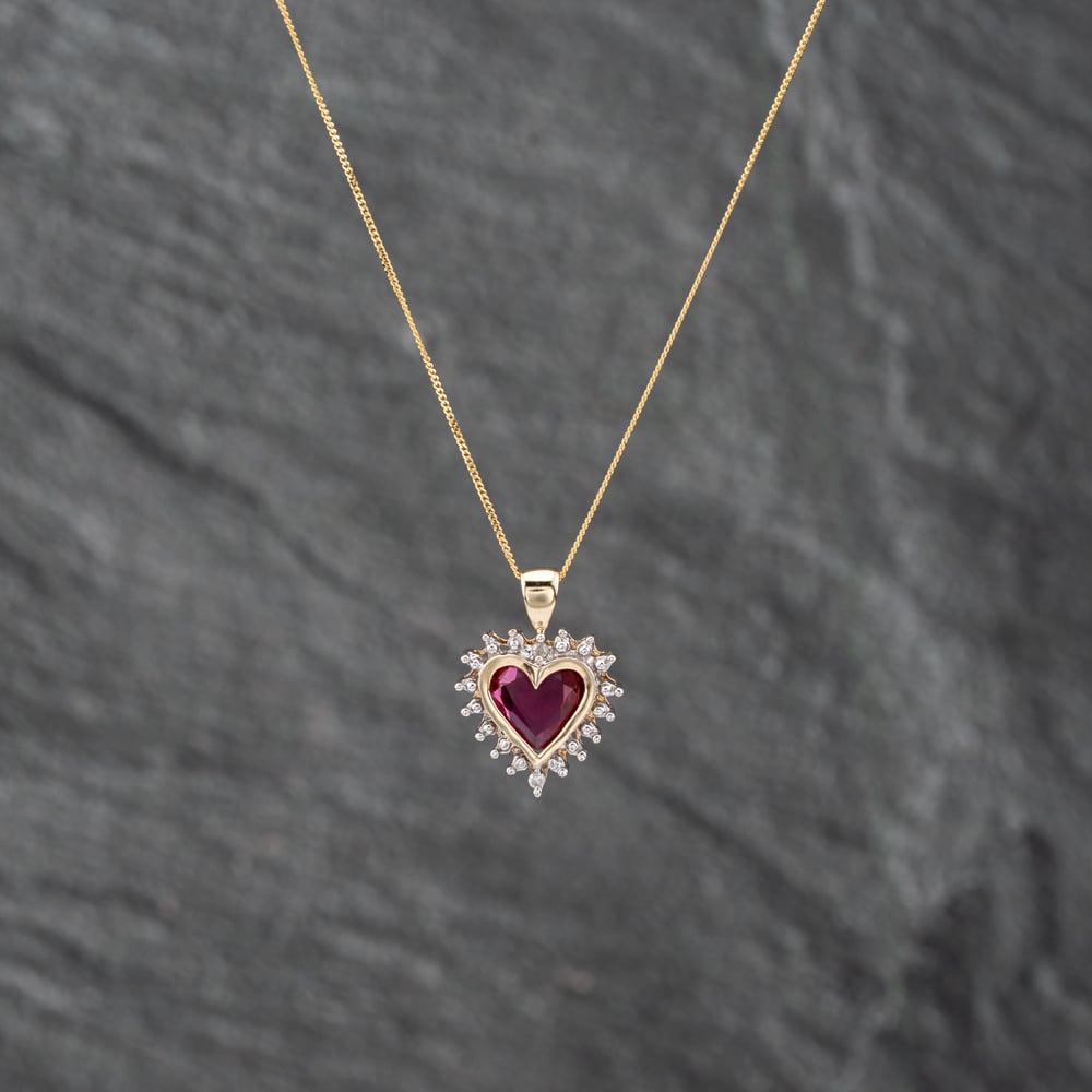 Second Hand 9ct Two Colour Gold Synthetic Ruby & 0.01ct Diamond Heart Pendant & 18 Inch Curb Chain 41142621 Second Hand 9ct Two Colour Gold Synthetic Ruby & 0.01ct Diamond Heart Pendant & 18 Inch Curb Chain 41142621
