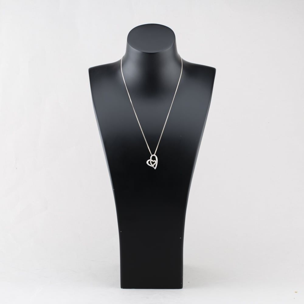 Second Hand 9ct White Gold 0.10ct Brilliant Cut Diamond Open Heart Double Pendant & 18 Inch Curb Chain 41143074 Second Hand 9ct White Gold 0.10ct Brilliant Cut Diamond Open Heart Double Pendant & 18 Inch Curb Chain 41143074