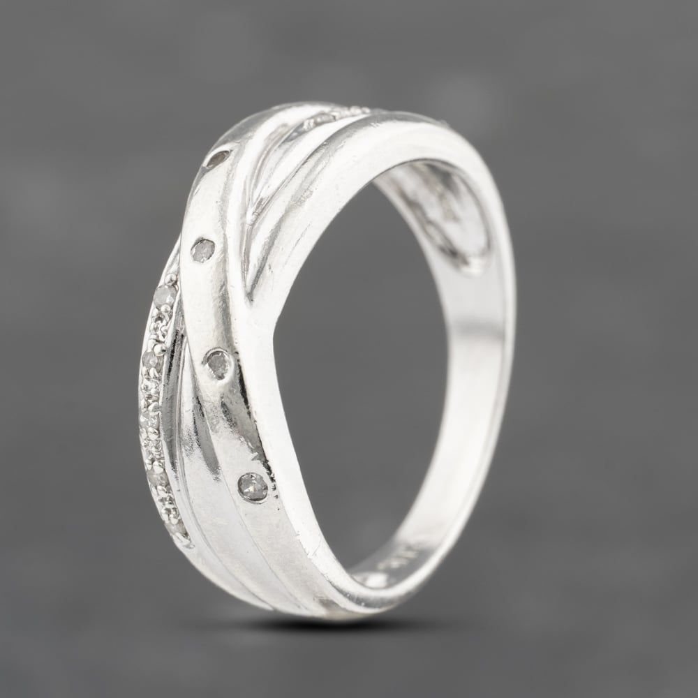 Second Hand 9ct White Gold 0.12ct Brilliant Cut Diamond Rubover And Pave Style Crossover Ring 41383580