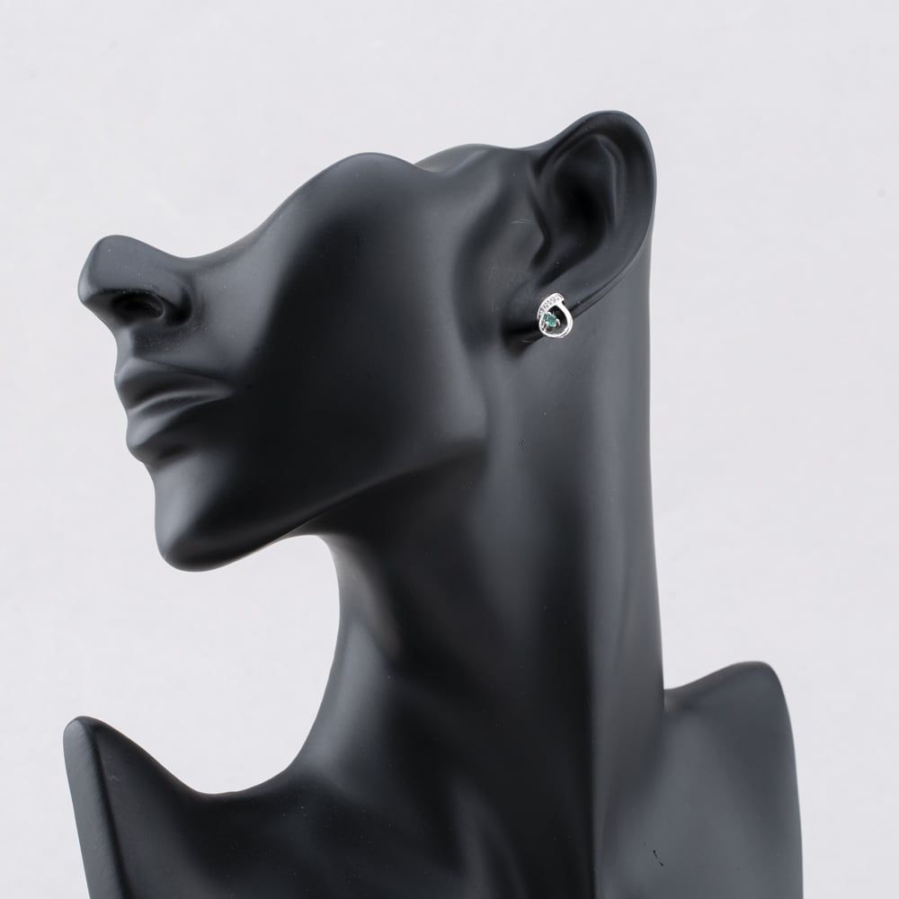 Second Hand 9ct White Gold 0.13ct Emerald & Diamond Open Work Swirl 12mm Stud Earrings 43171336 Second Hand 9ct White Gold 0.13ct Emerald & Diamond Open Work Swirl 12mm Stud Earrings 43171336
