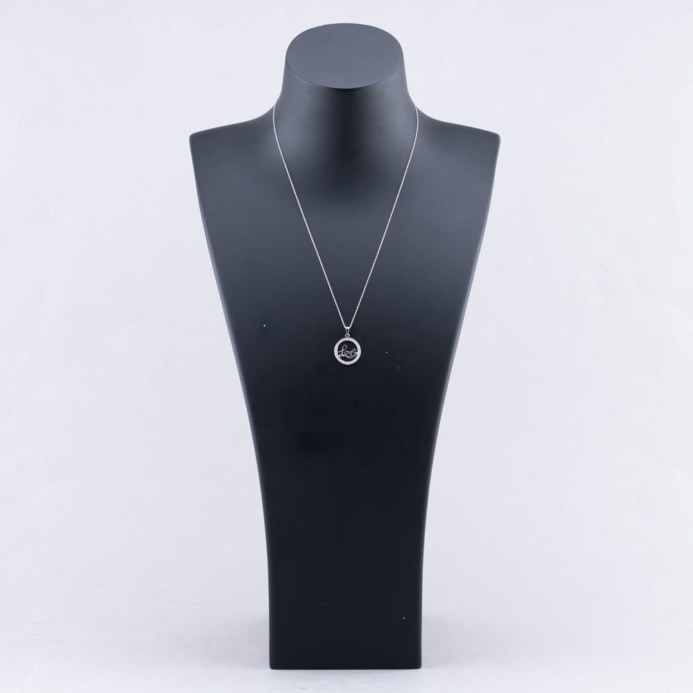 Second Hand 9ct White Gold 0.14ct Diamond Round Love Pendant & 18 Inch Prince Of Wales Chain 41142872