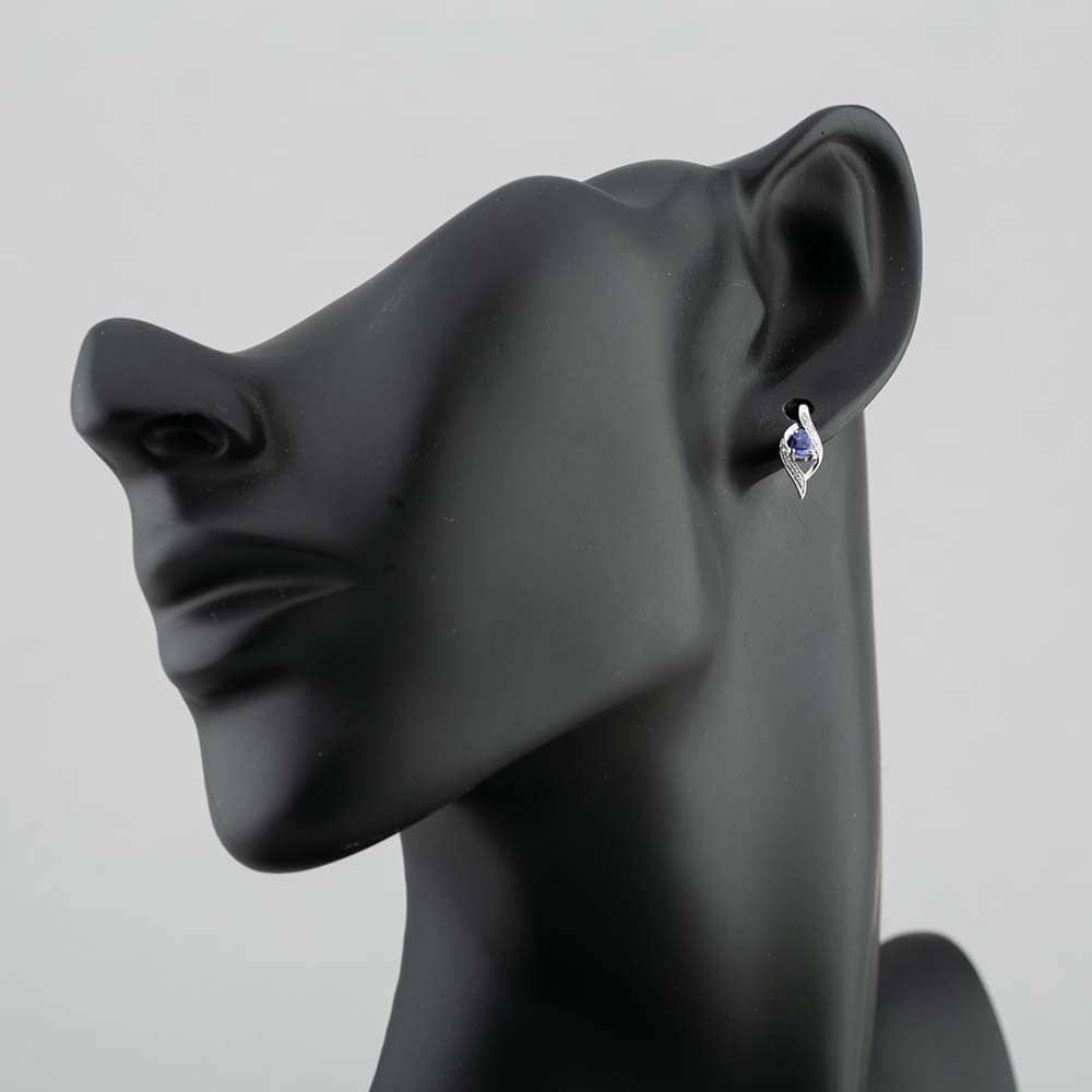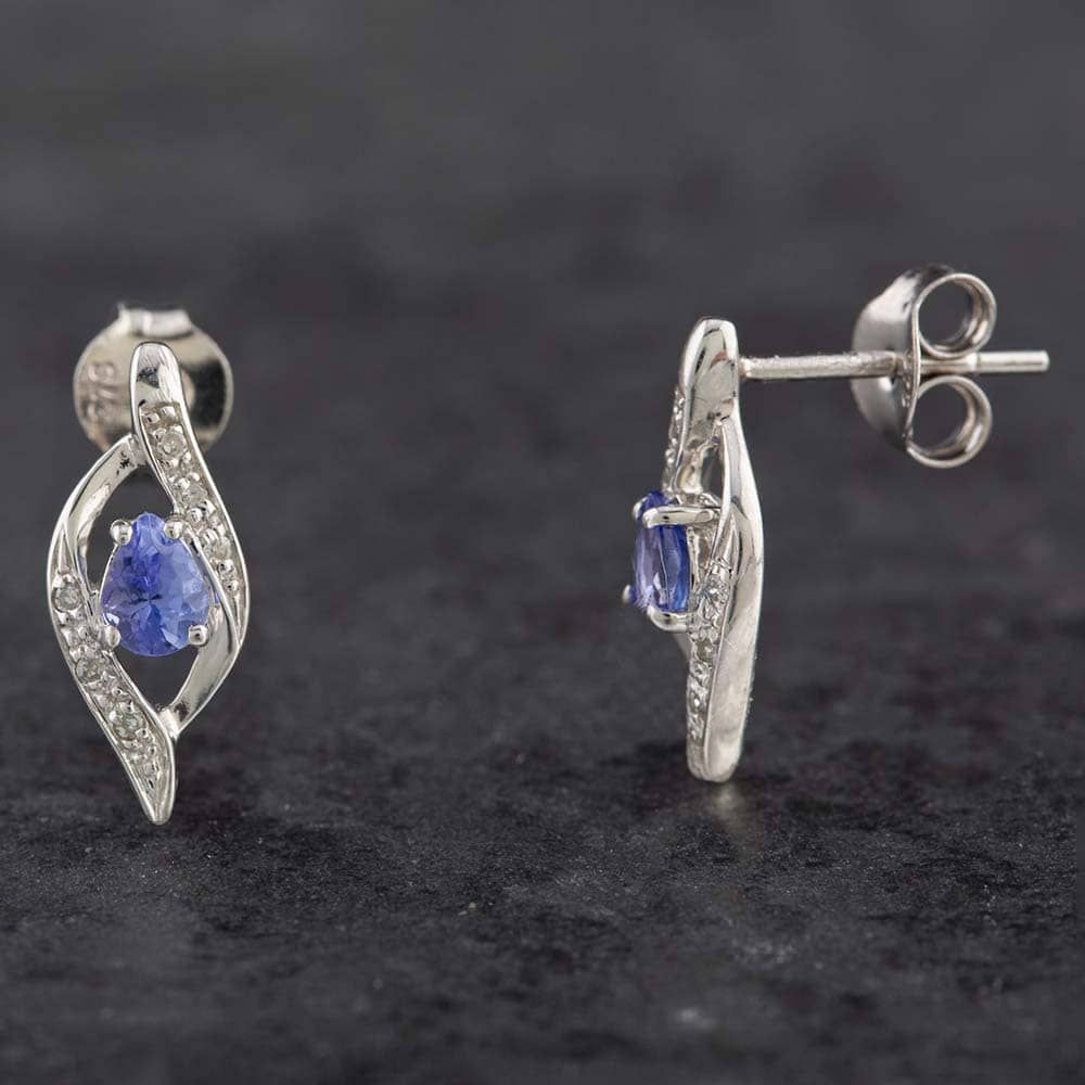 9ct White Gold 0.14ct Tanzanite & Diamond Swirl Stud Earrings