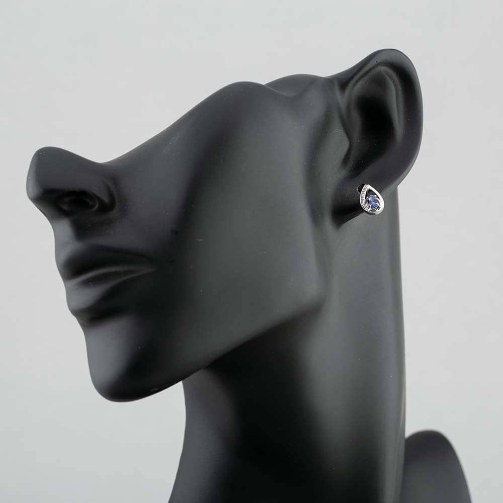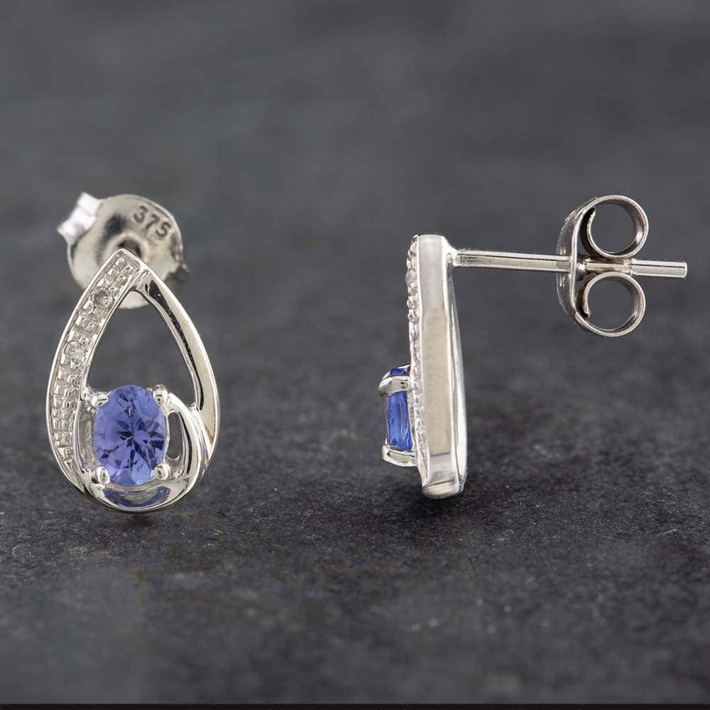9ct White Gold 0.16ct Tanzanite & Diamond Pear Shaped Stud Earrings