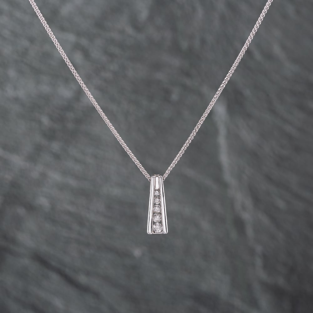 9ct White Gold 0.20ct Brilliant Cut Diamond Pendant & 16 Inch Curb Chain
