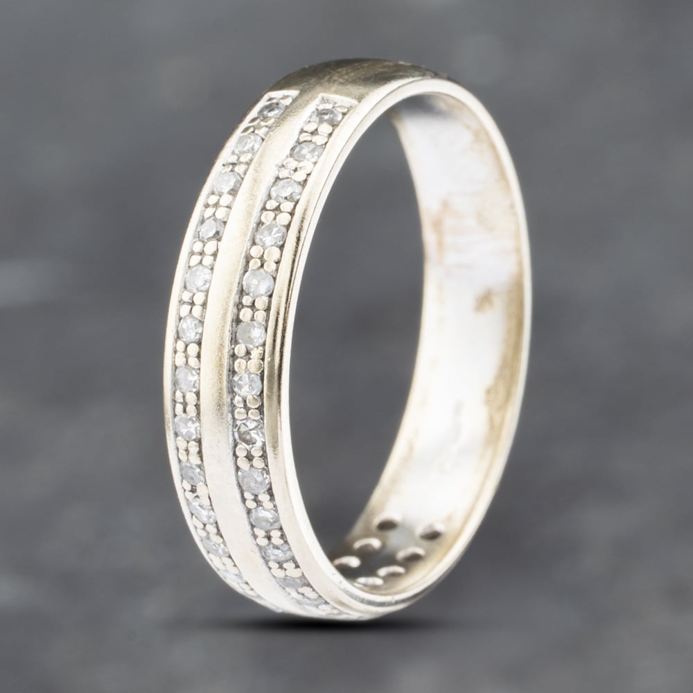 Second Hand 9ct White Gold 0.20ct Brilliant Cut Diamond Two Row Ring 41382654