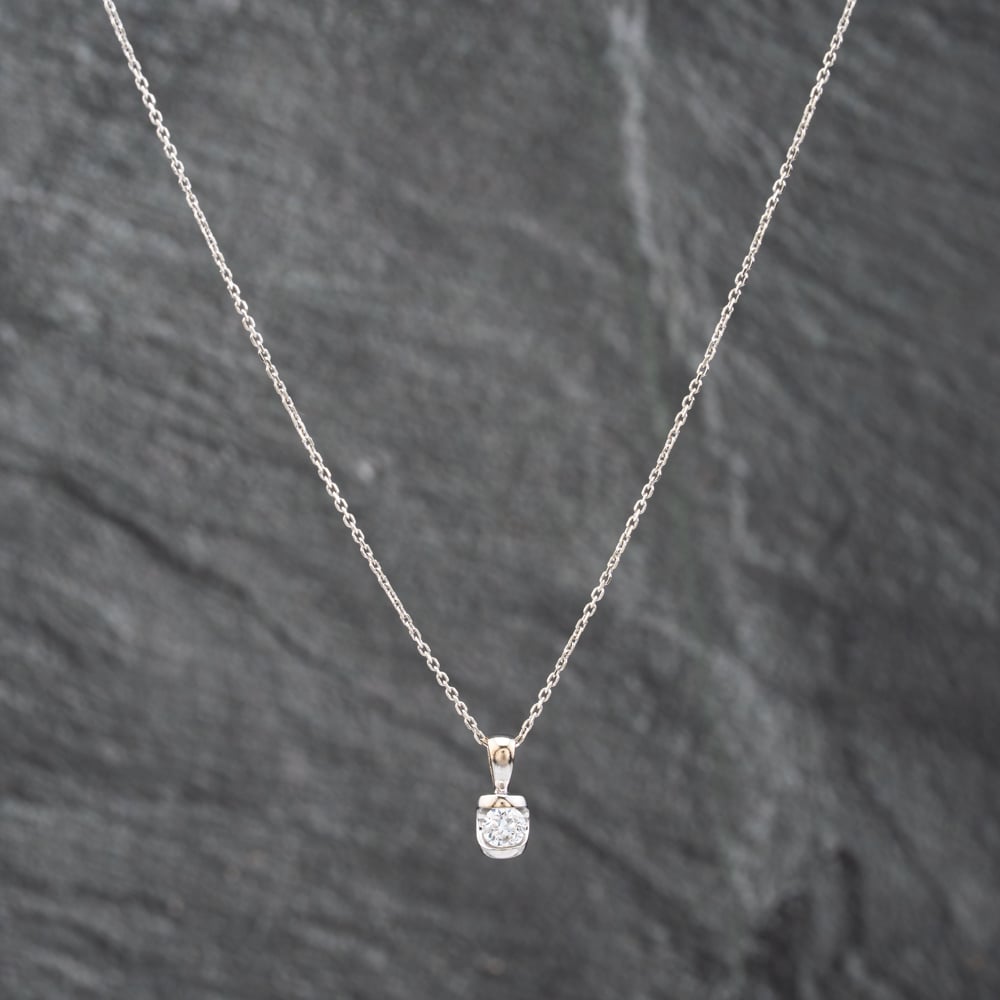 9ct White Gold 0.25ct Brilliant Cut Diamond Single Stone Pendant & 18 Inch Trace Chain