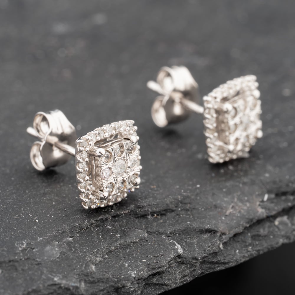 9ct White Gold 0.25ct Brilliant Cut Diamond Square Cluster Stud Earrings