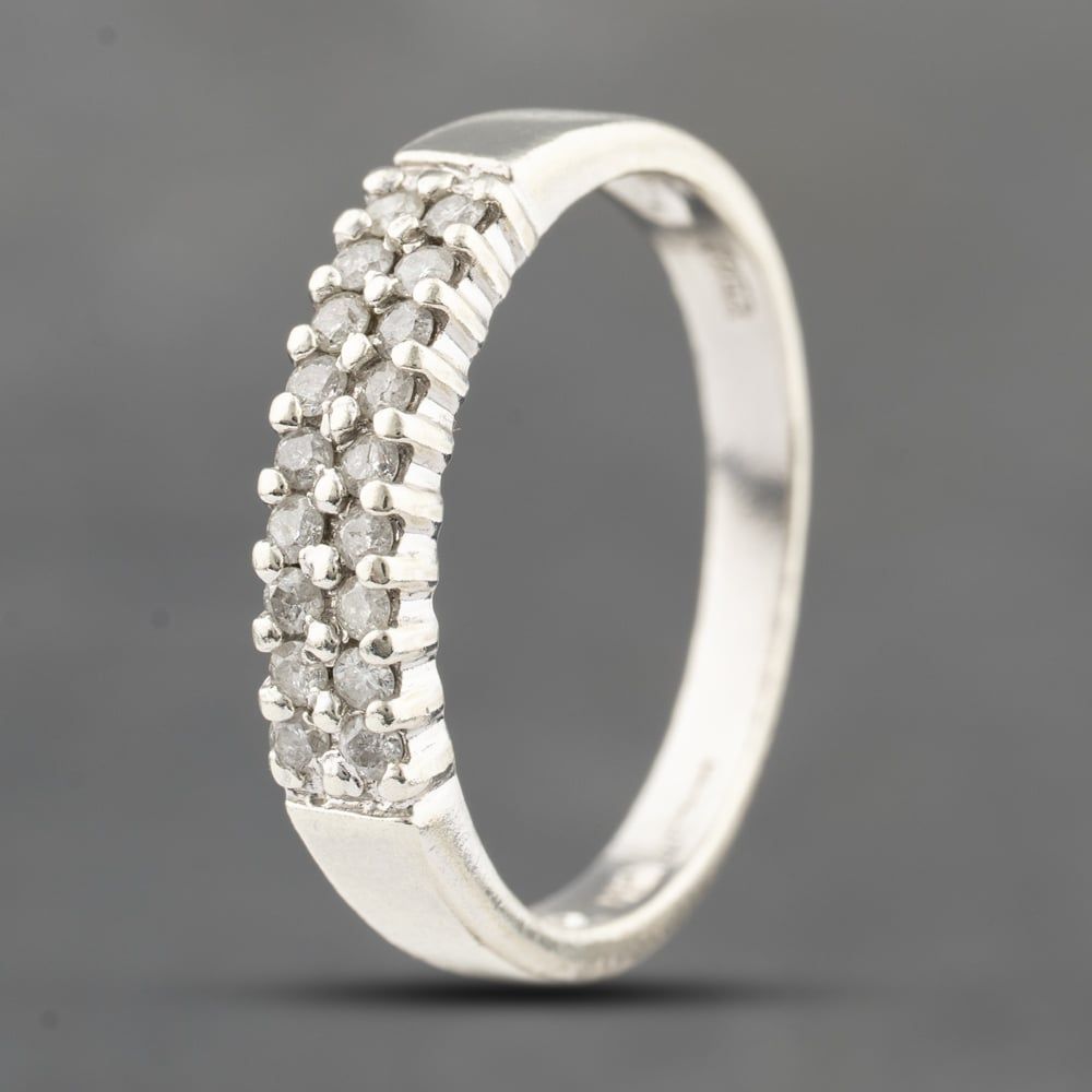 9ct White Gold 0.25ct Brilliant Cut Diamond Two Row Ring