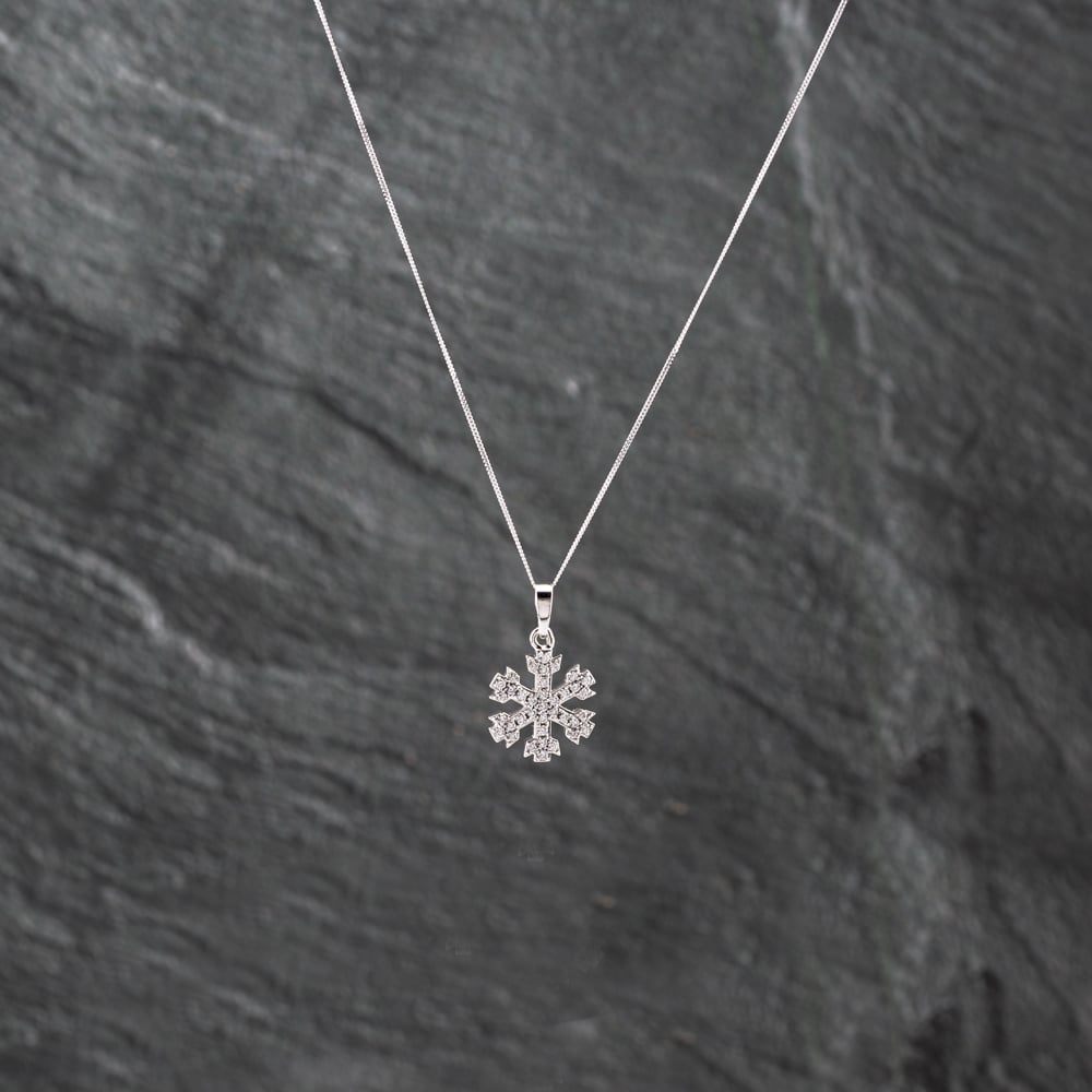 9ct White Gold 0.26ct Diamond Snowflake Pendant & 18 Inch Curb Chain
