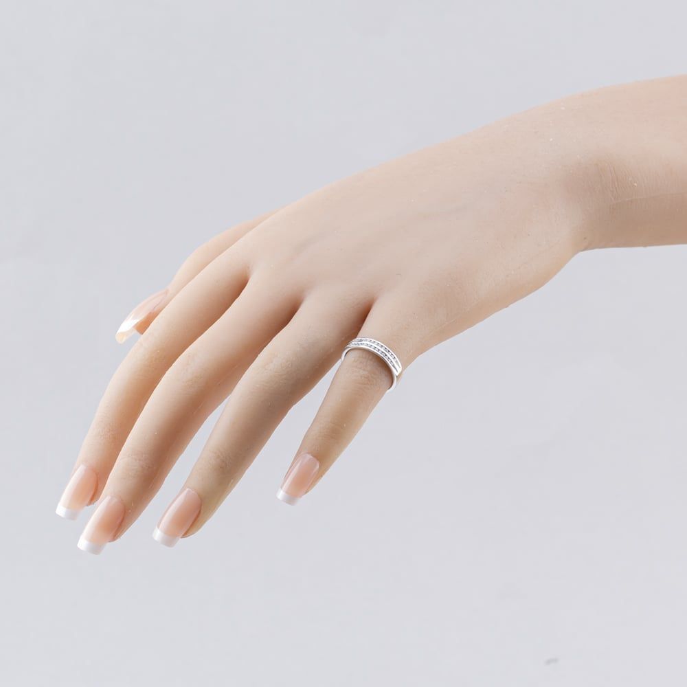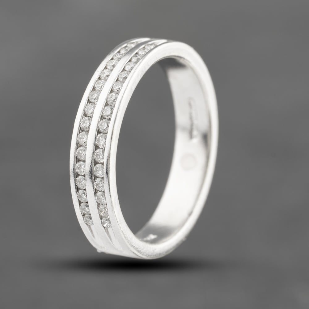 9ct White Gold 0.32ct Brilliant Cut Diamond 2 Row 3.9mm Wedding Ring