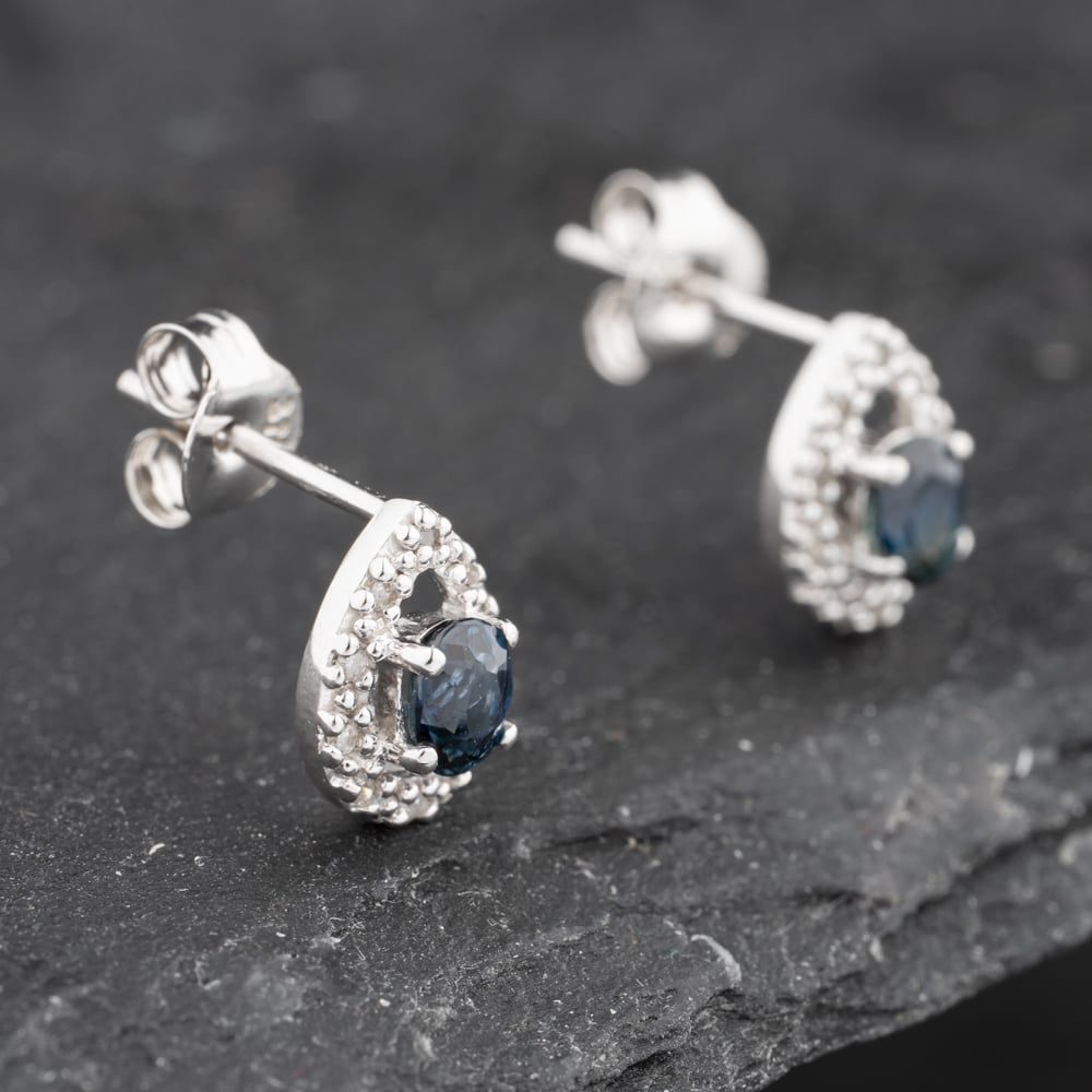 9ct White Gold 0.38ct Sapphire & Diamond Teardrop Cluster 8.5mm Stud Earrings