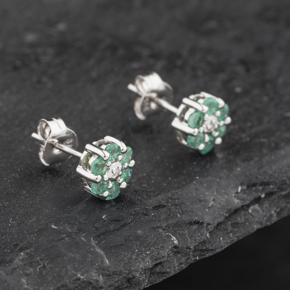 Second Hand 9ct White Gold 0.40ct Emerald & Diamond Cluster Stud Earrings 43171323 Second Hand 9ct White Gold 0.40ct Emerald & Diamond Cluster Stud Earrings 43171323