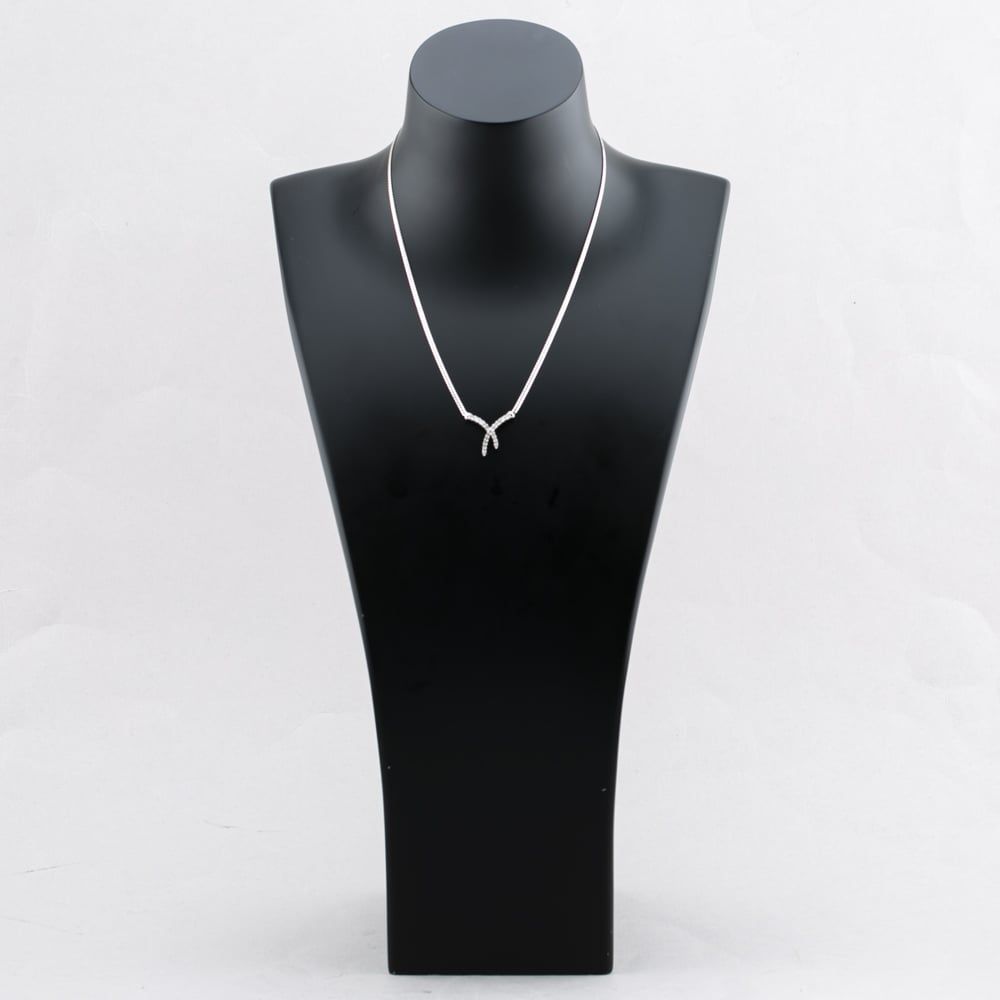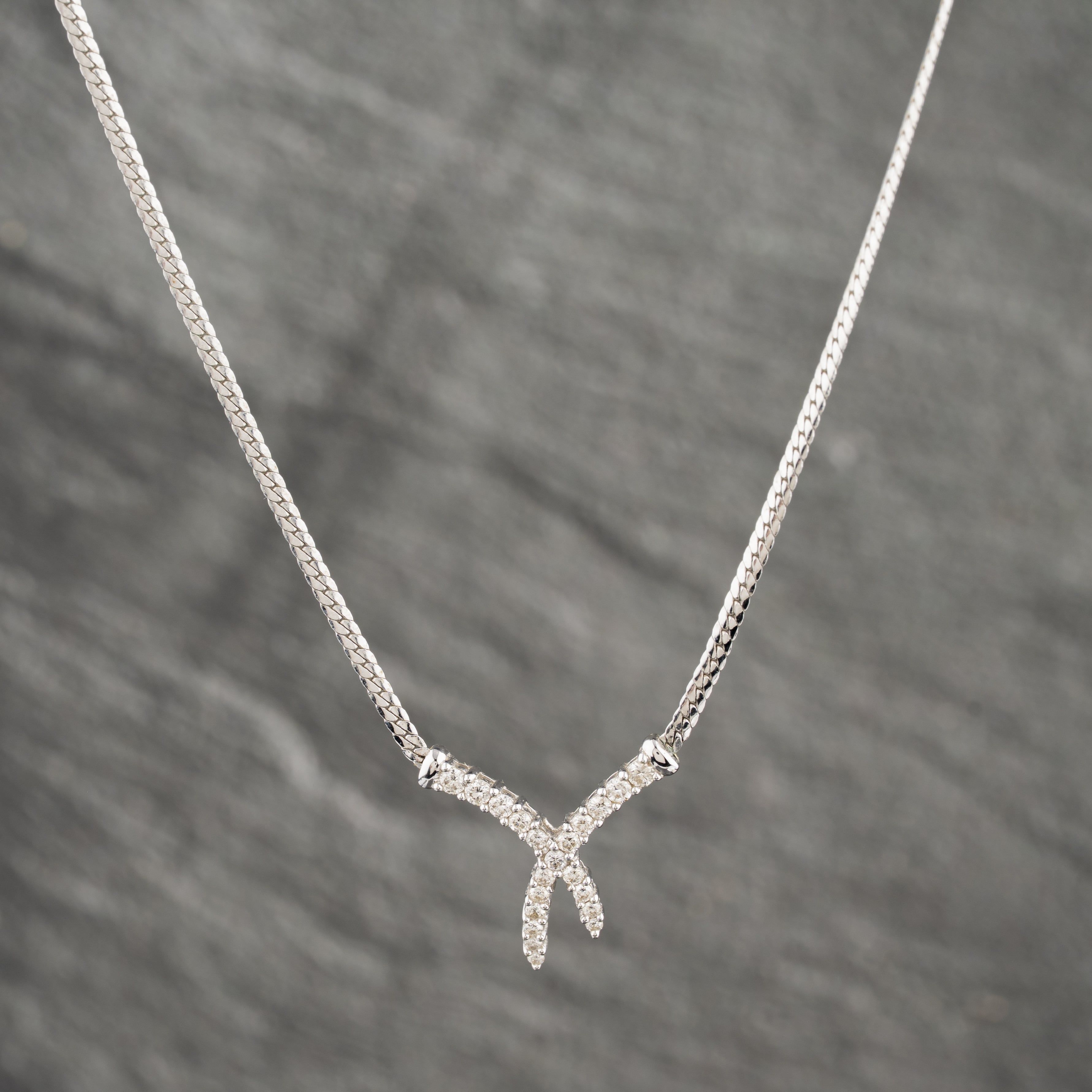 9ct White Gold 0.50ct Brilliant Cut Diamond Crossover Pendant & 16 Inch Herringbone Chain