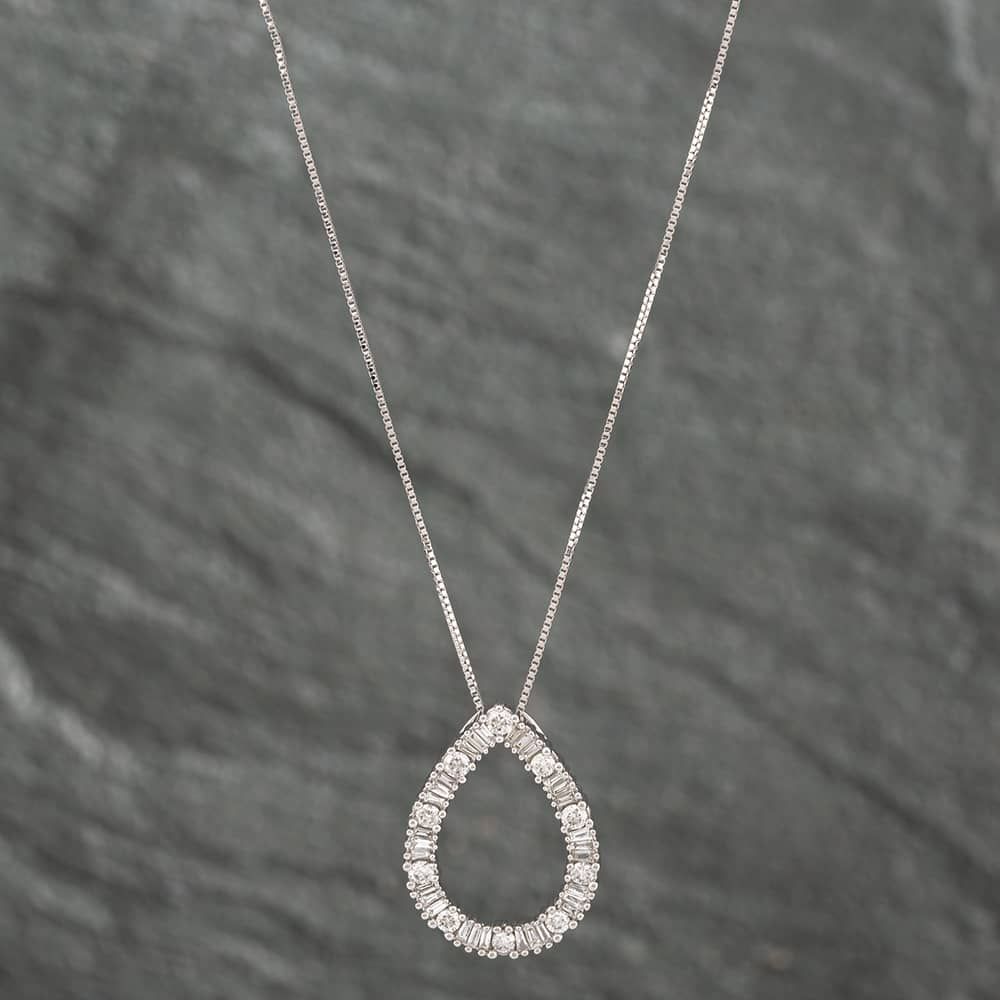 9ct White Gold 0.50ct Diamond Openwork Teardrop Pendant & 18 Inch Box Chain