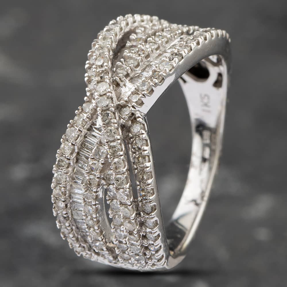 9ct White Gold 1.00ct Brilliant & Baguette Cut Diamond Crossover Ring
