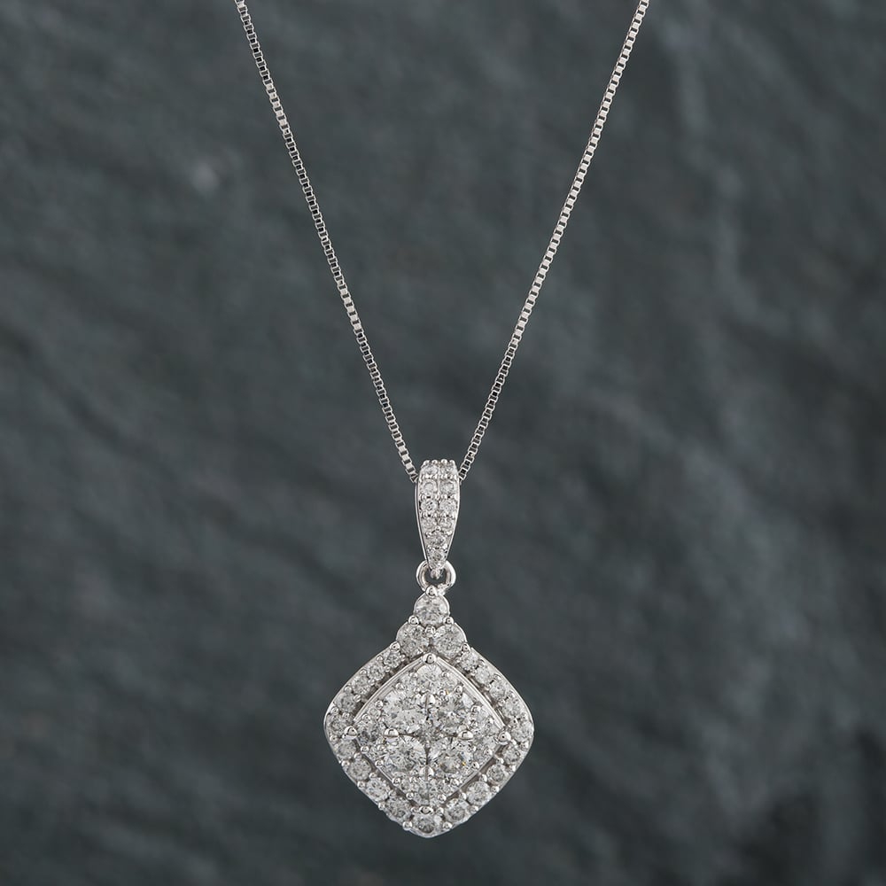 9ct White Gold 1.00ct Brilliant Cut Diamond Pendant & 18 Inch Box Chain