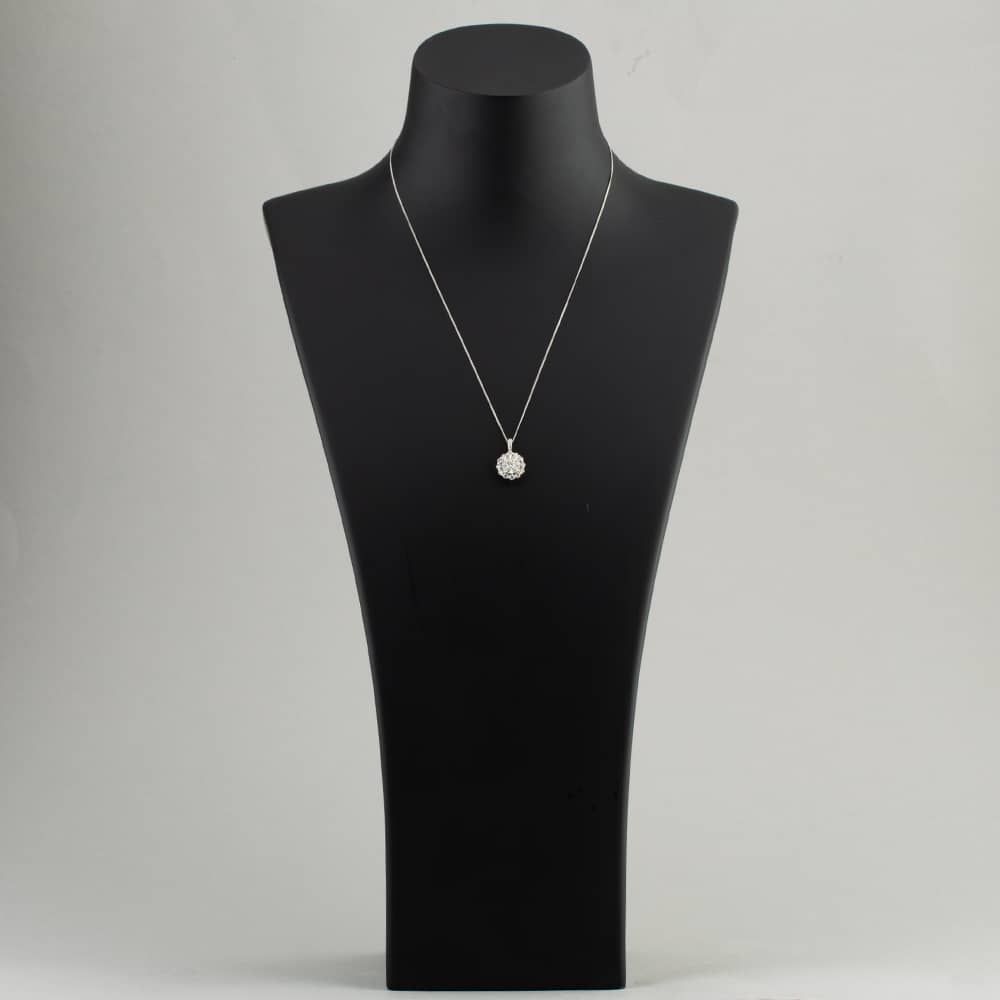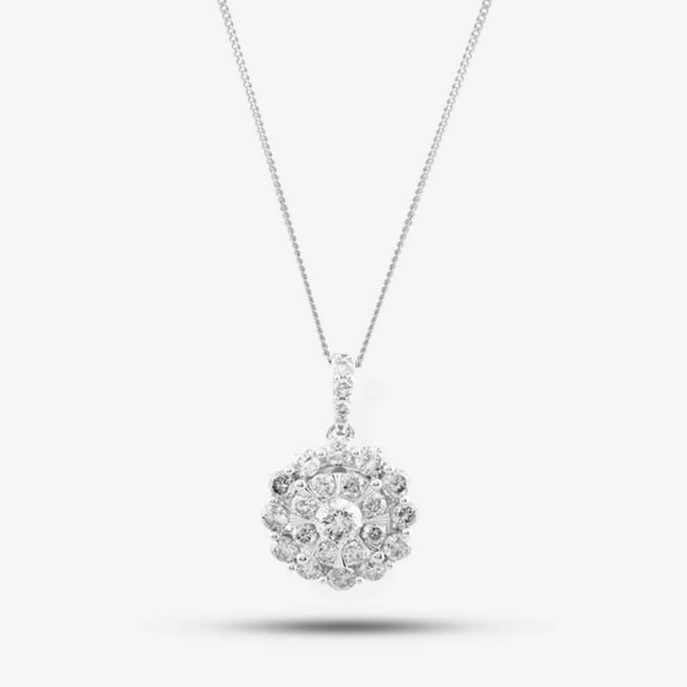 9ct White Gold 1.00ct Diamond Cluster Pendant & 18 Inch Curb Chain