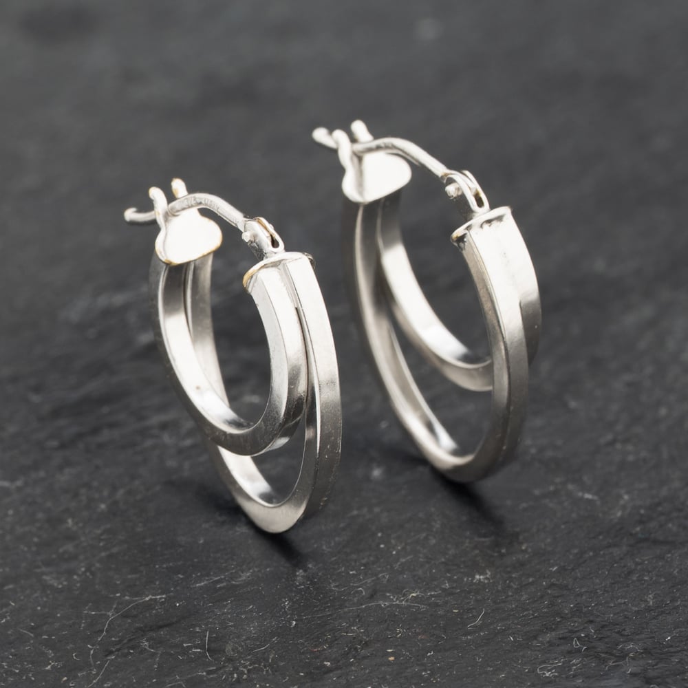9ct White Gold 17mm Double Loop Creole Earrings