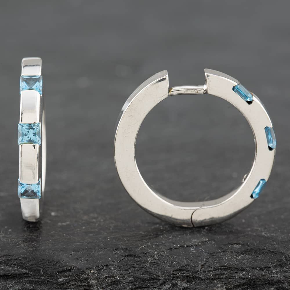 Second Hand 9ct White Gold 19.3mm Blue Topaz Hoop Earrings 41171955