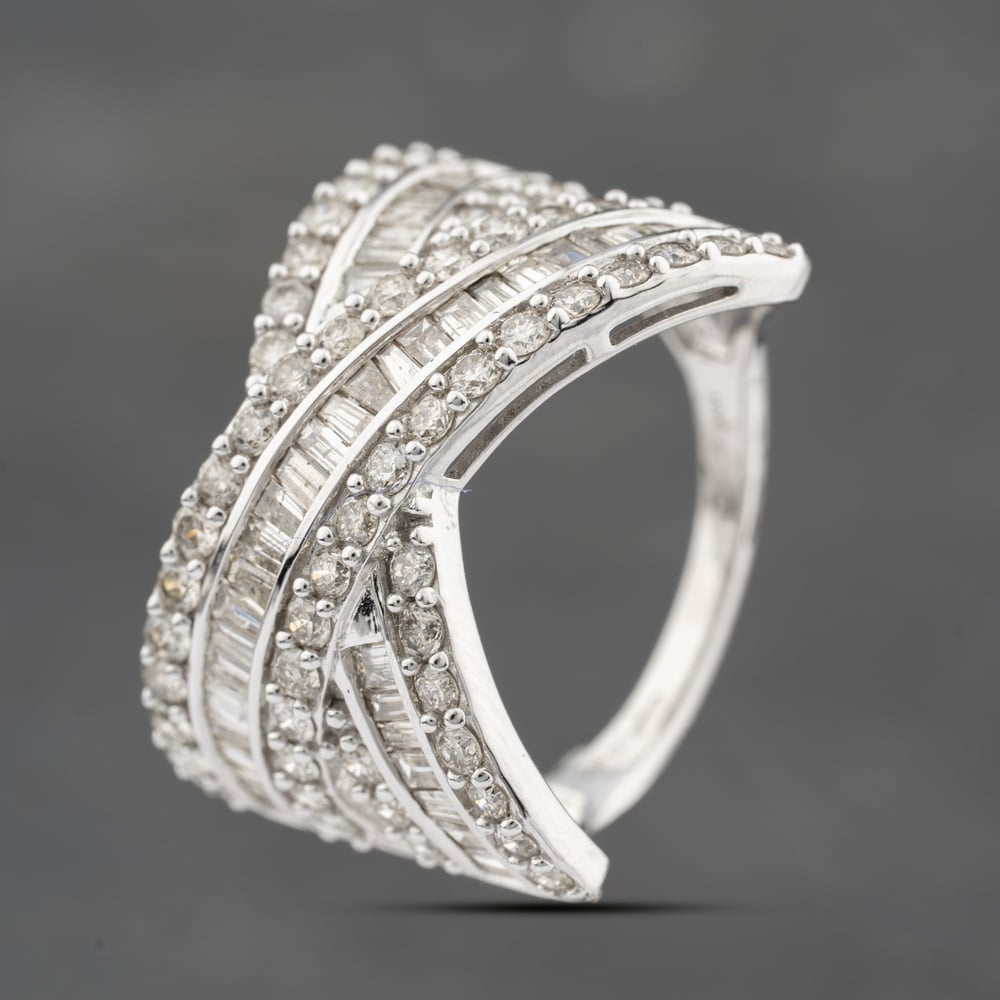 9ct White Gold 2.00ct Diamond 6 Row Crossover Ring