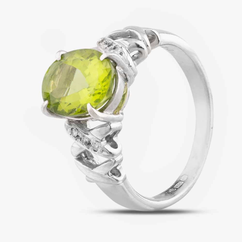 9ct White Gold 2.91ct Peridot & 0.03ct Brilliant Cut Diamond Dress Ring