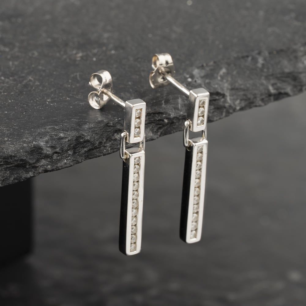 Second Hand 9ct White Gold 22.8mm 0.28ct Diamond Bar Dropper Earrings 41173138 Second Hand 9ct White Gold 22.8mm 0.28ct Diamond Bar Dropper Earrings 41173138