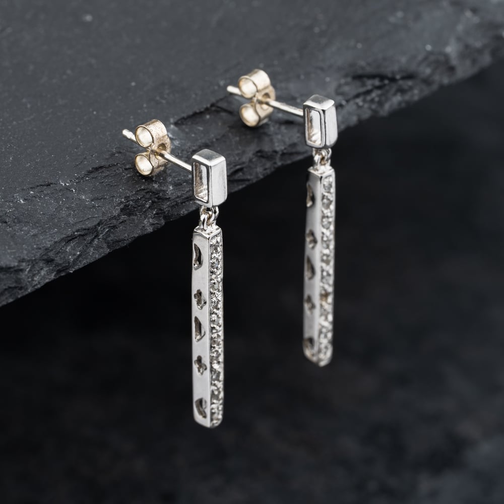 9ct White Gold 29.5mm Diamond Bar Dropper Earrings